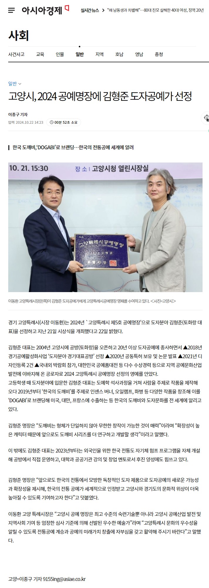 I was selected as the 5th Craft Master of Goyang City,