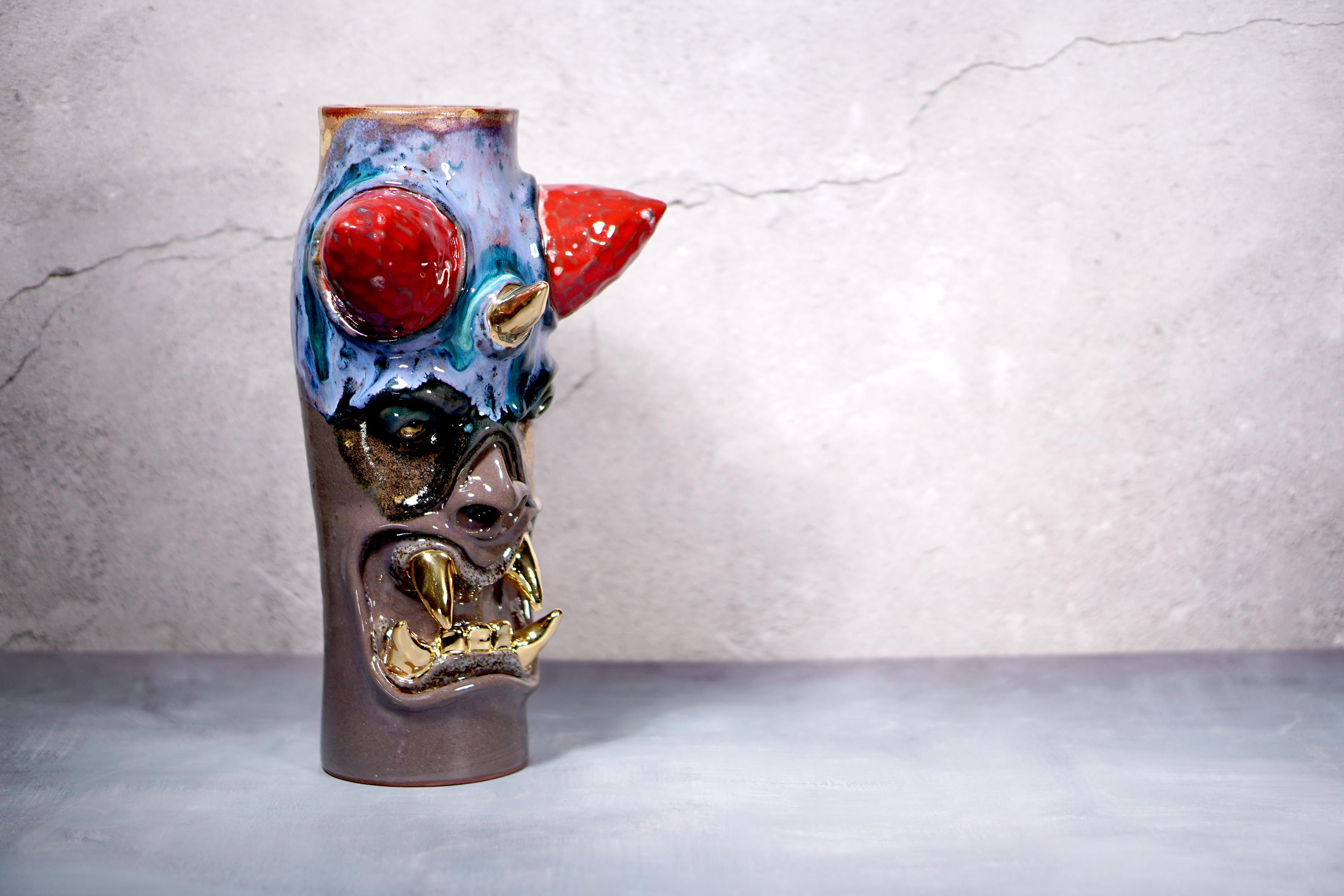 They make gold for good people, protect their homes, and help them succeed. Their figures exist in people's imaginations, and sometimes they are seen as men with magical powers, or they are portrayed as terrifying monsters. You can meet Korean goblin faces imagined by ceramic artist Hyung Jun Kim in our brand.