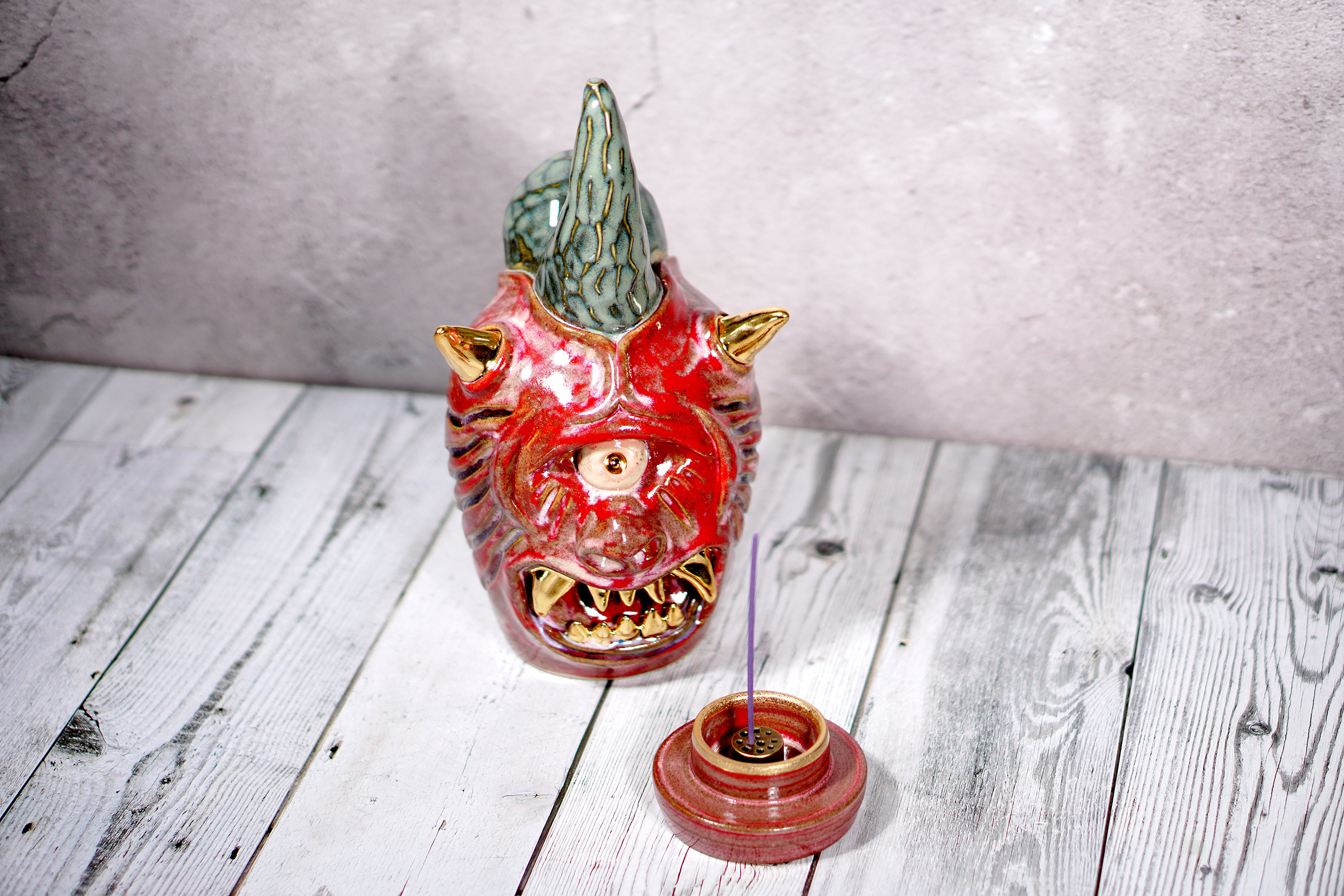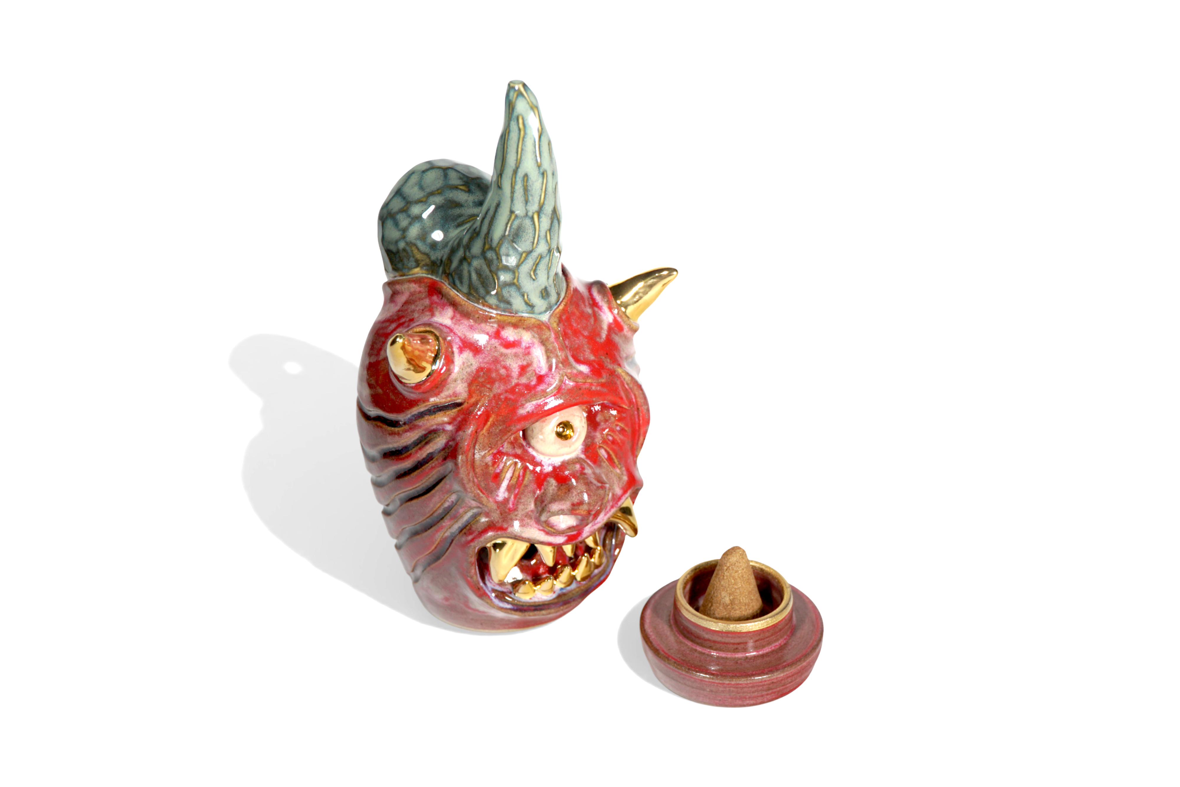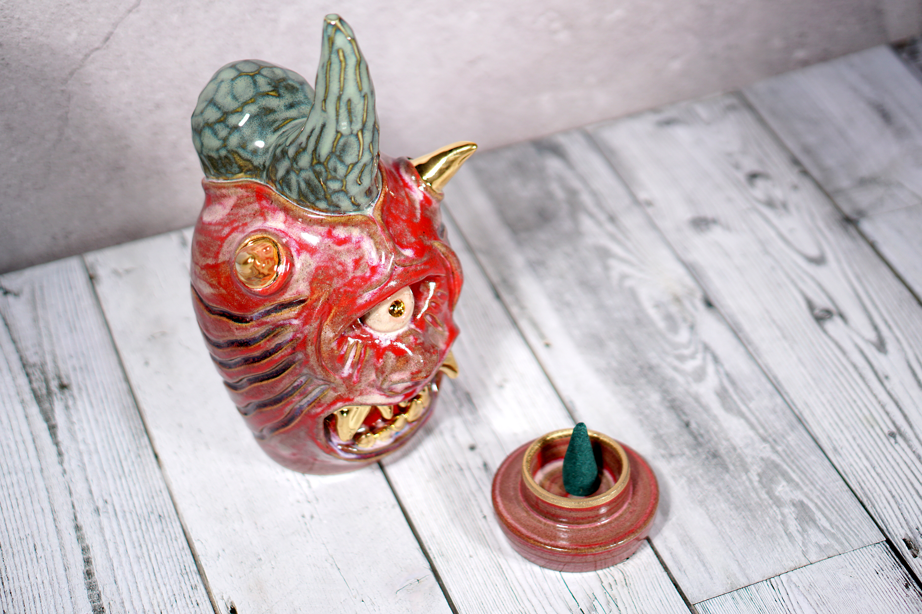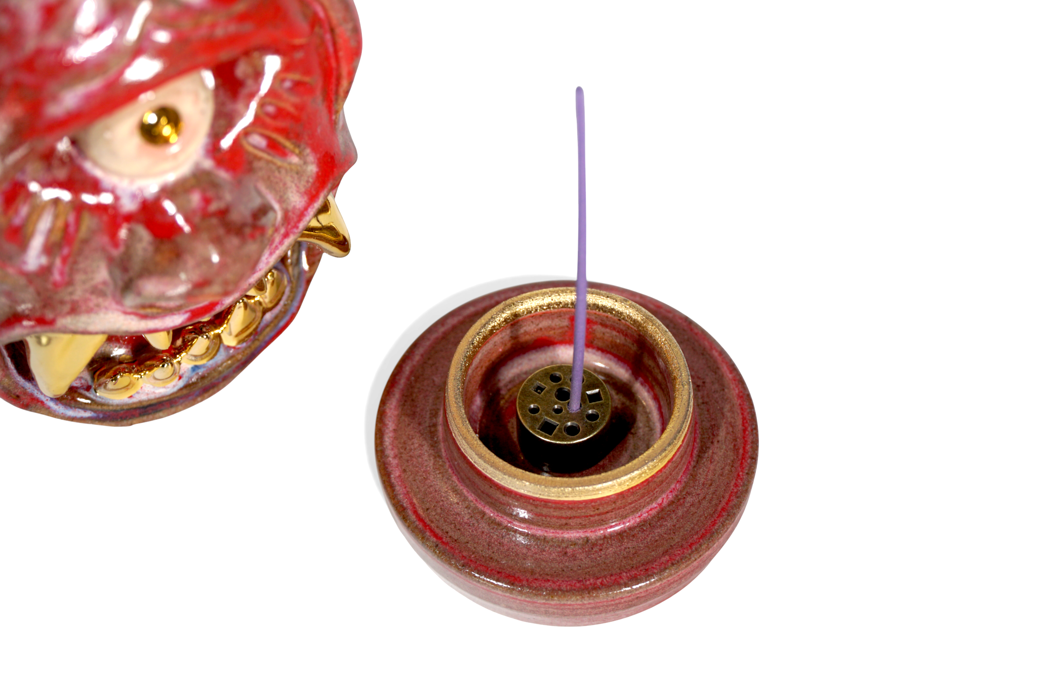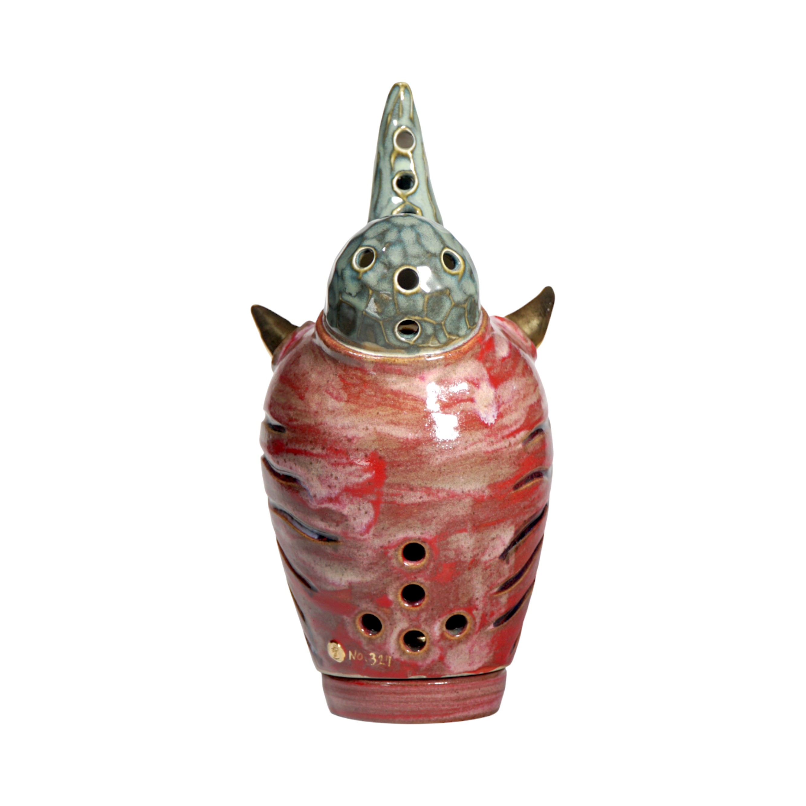 Made by sculpting and wheel throwing, the scent of incense burner spreads subtly through the hollow parts of the lid.