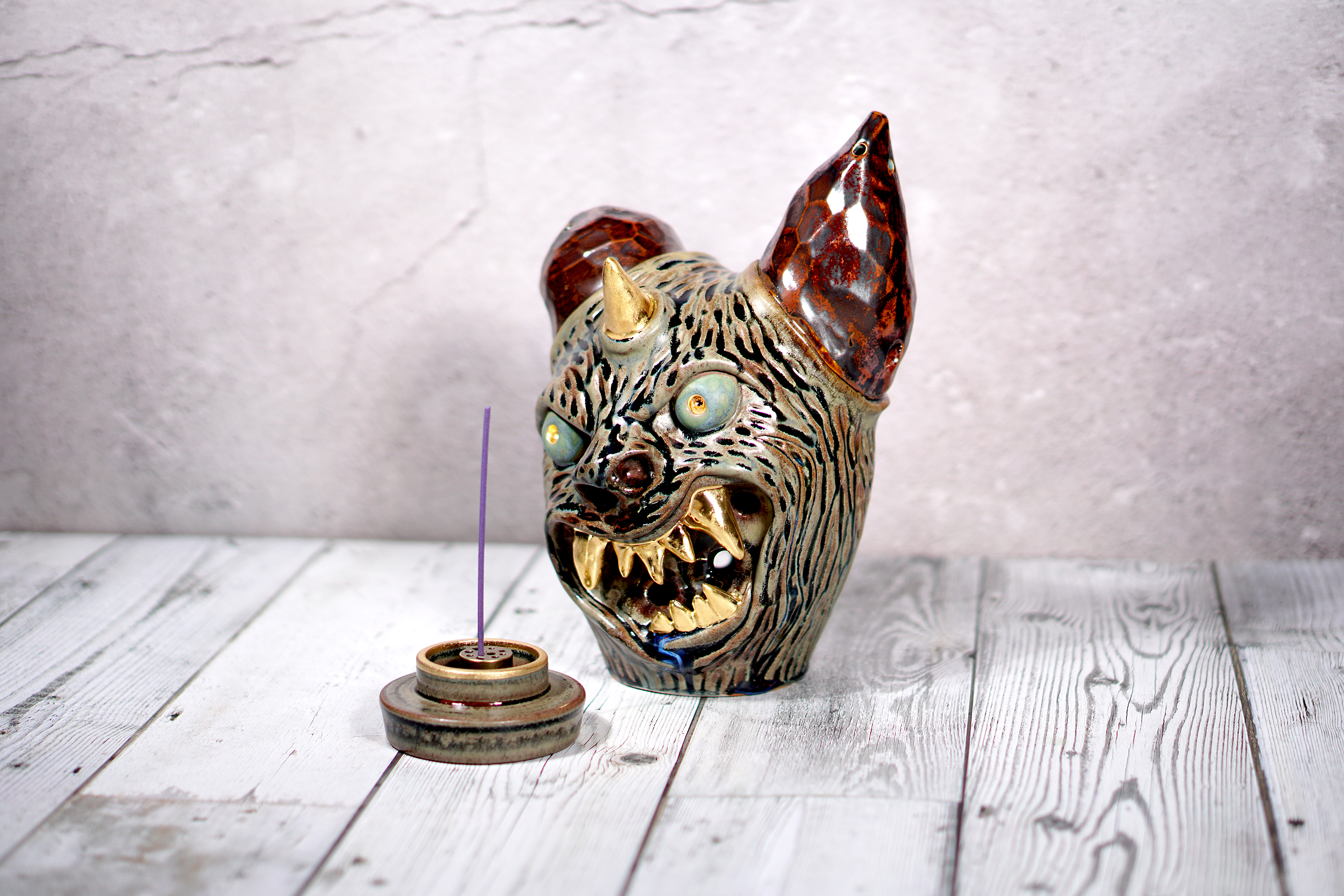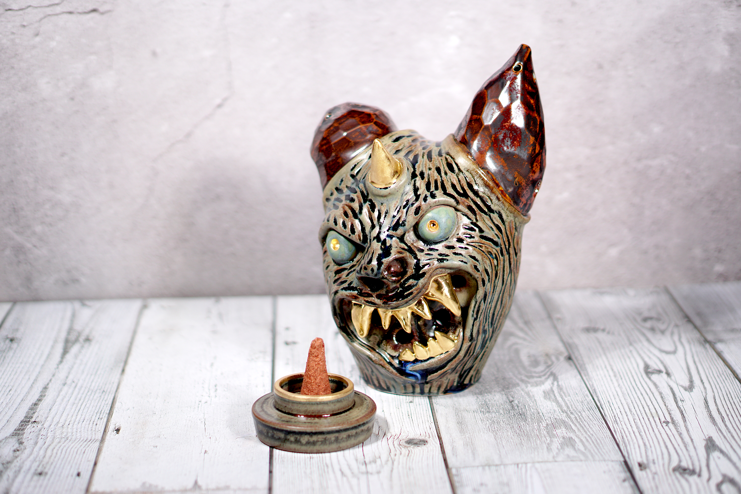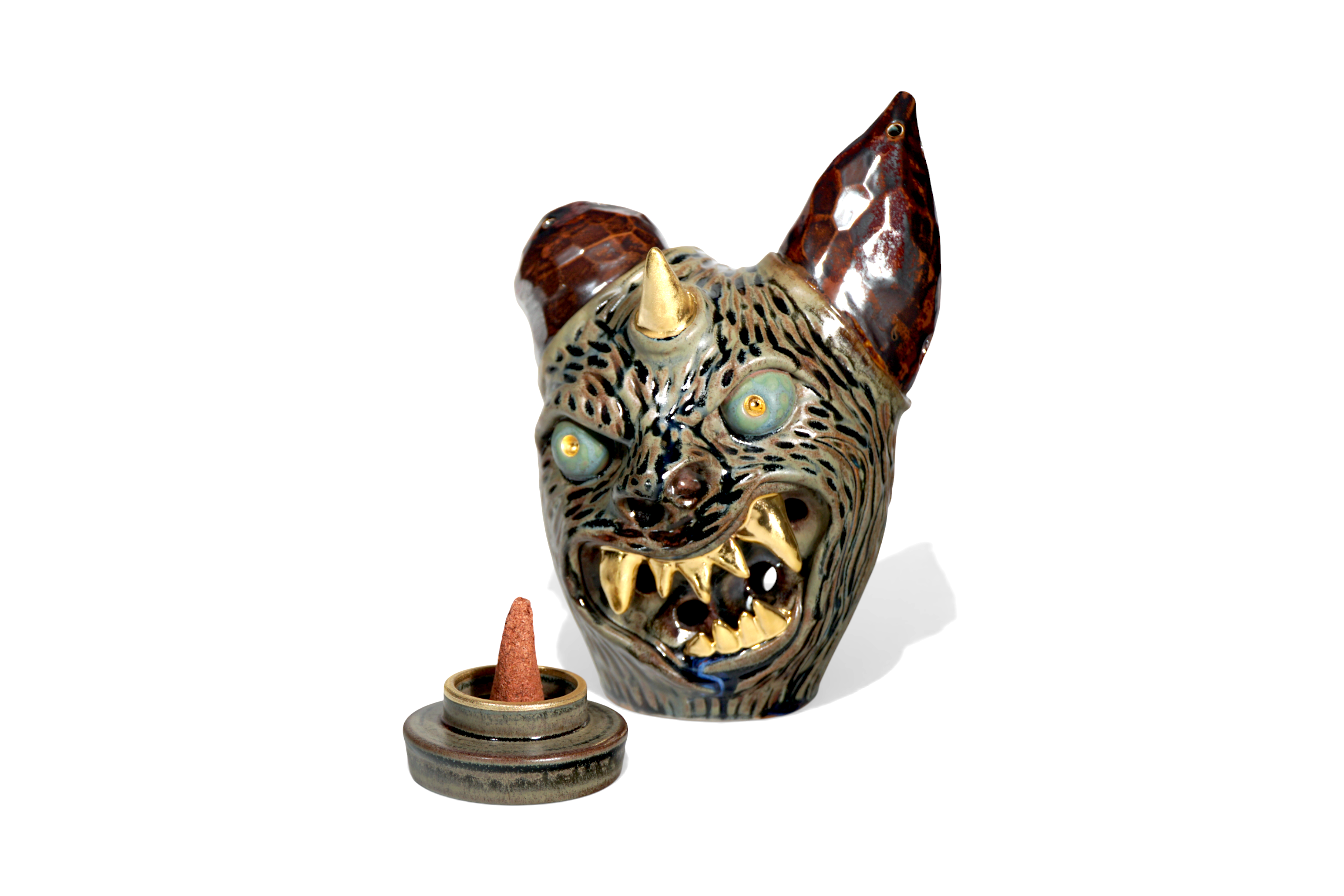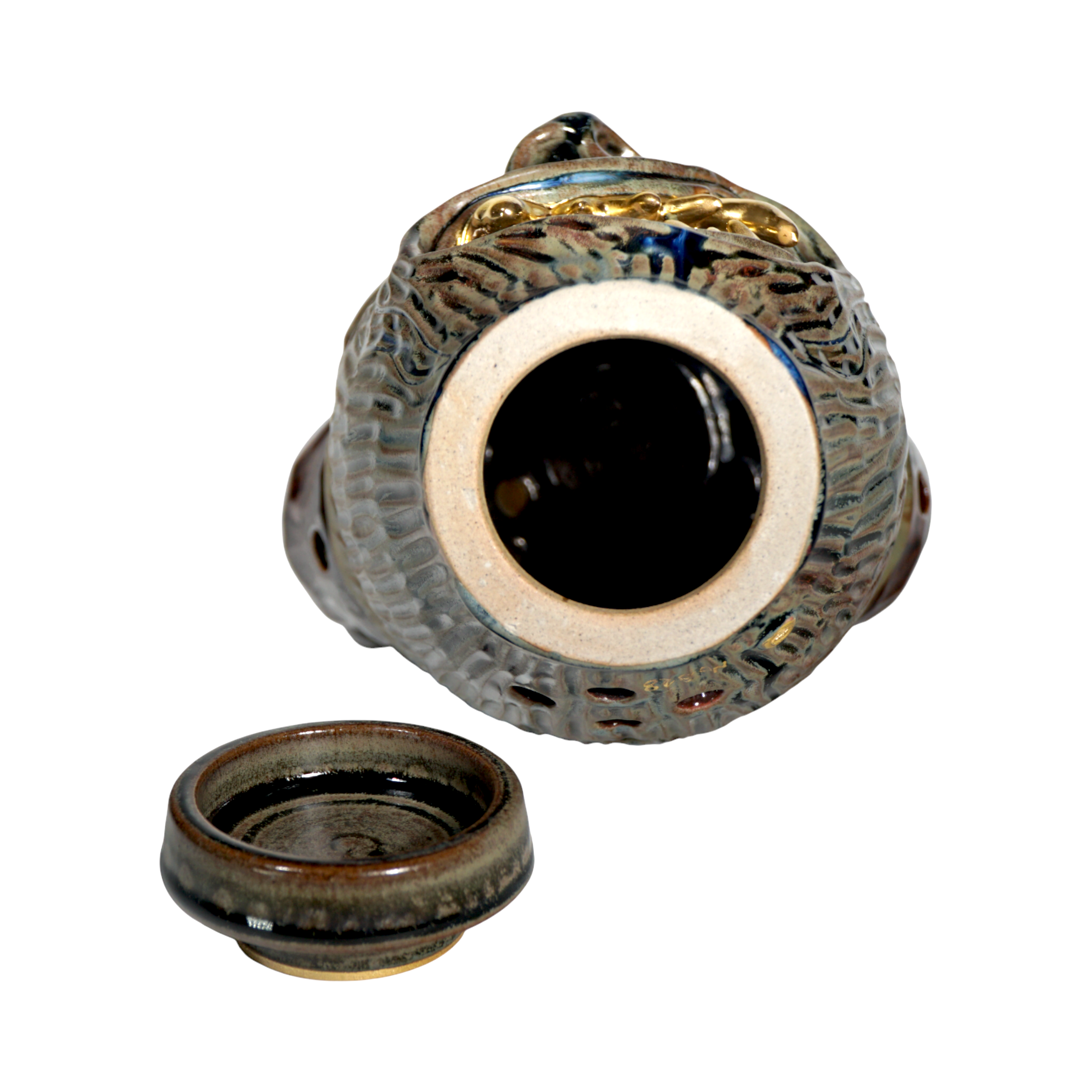 Made by sculpting and wheel throwing, the scent of incense burner spreads subtly through the hollow parts of the lid.