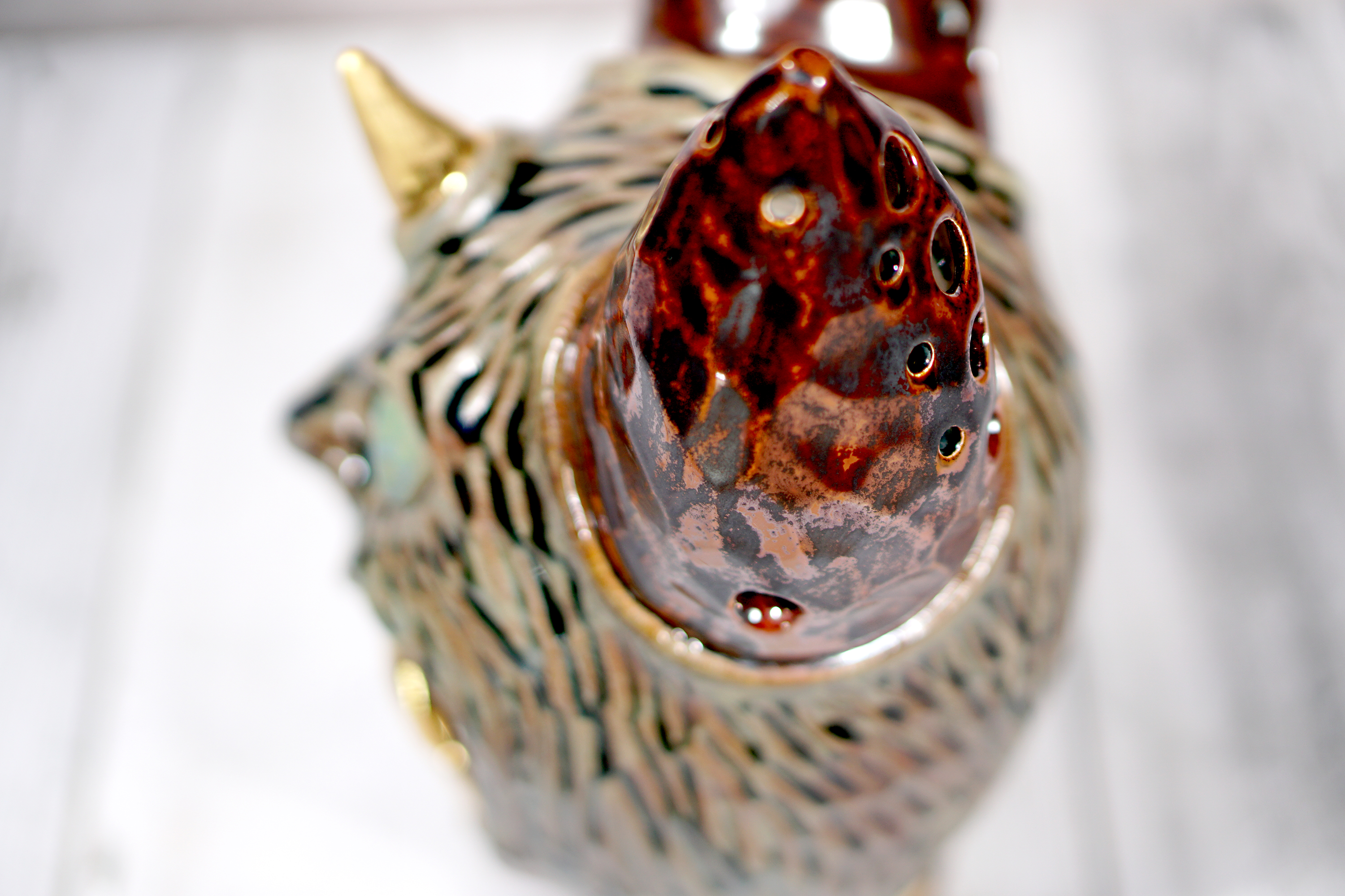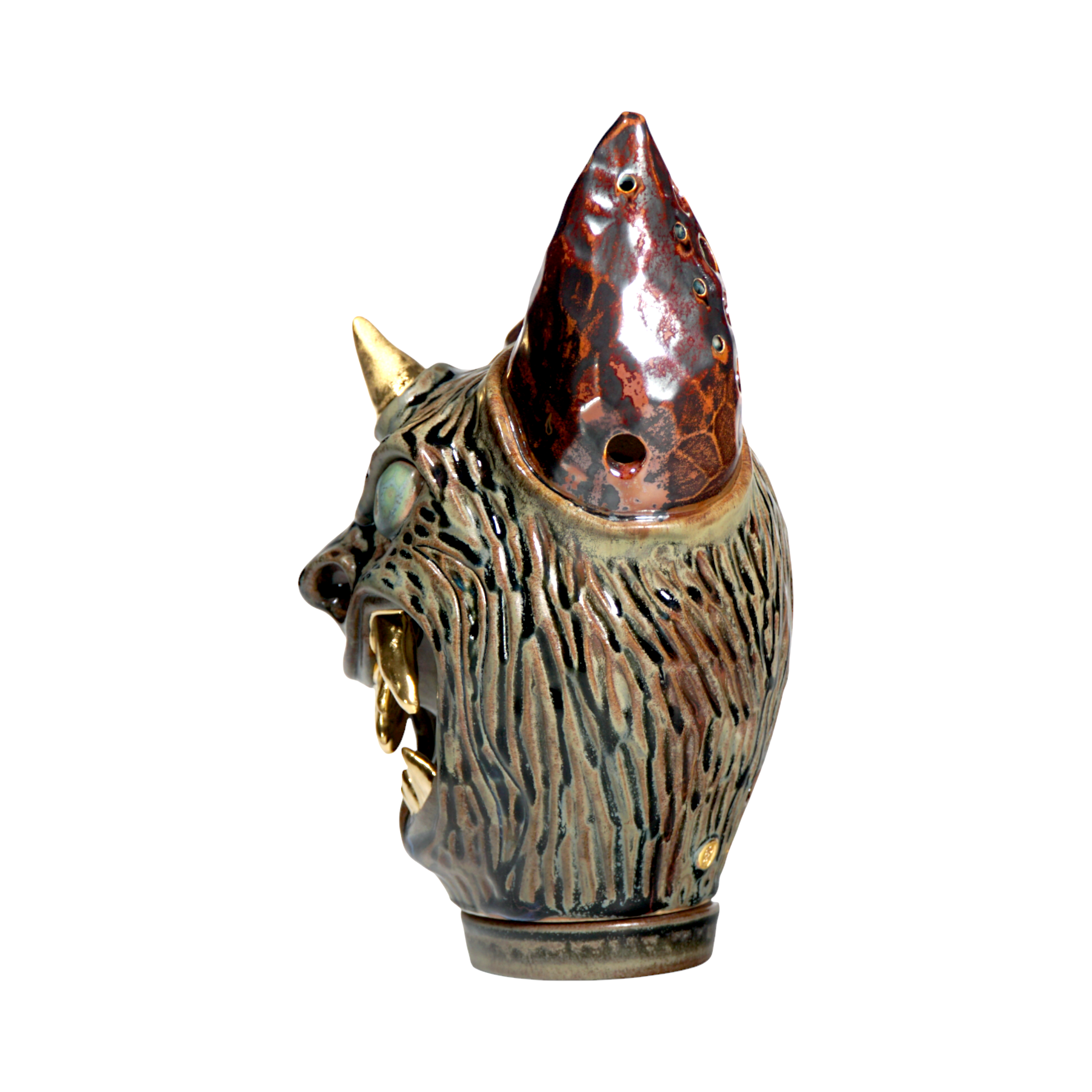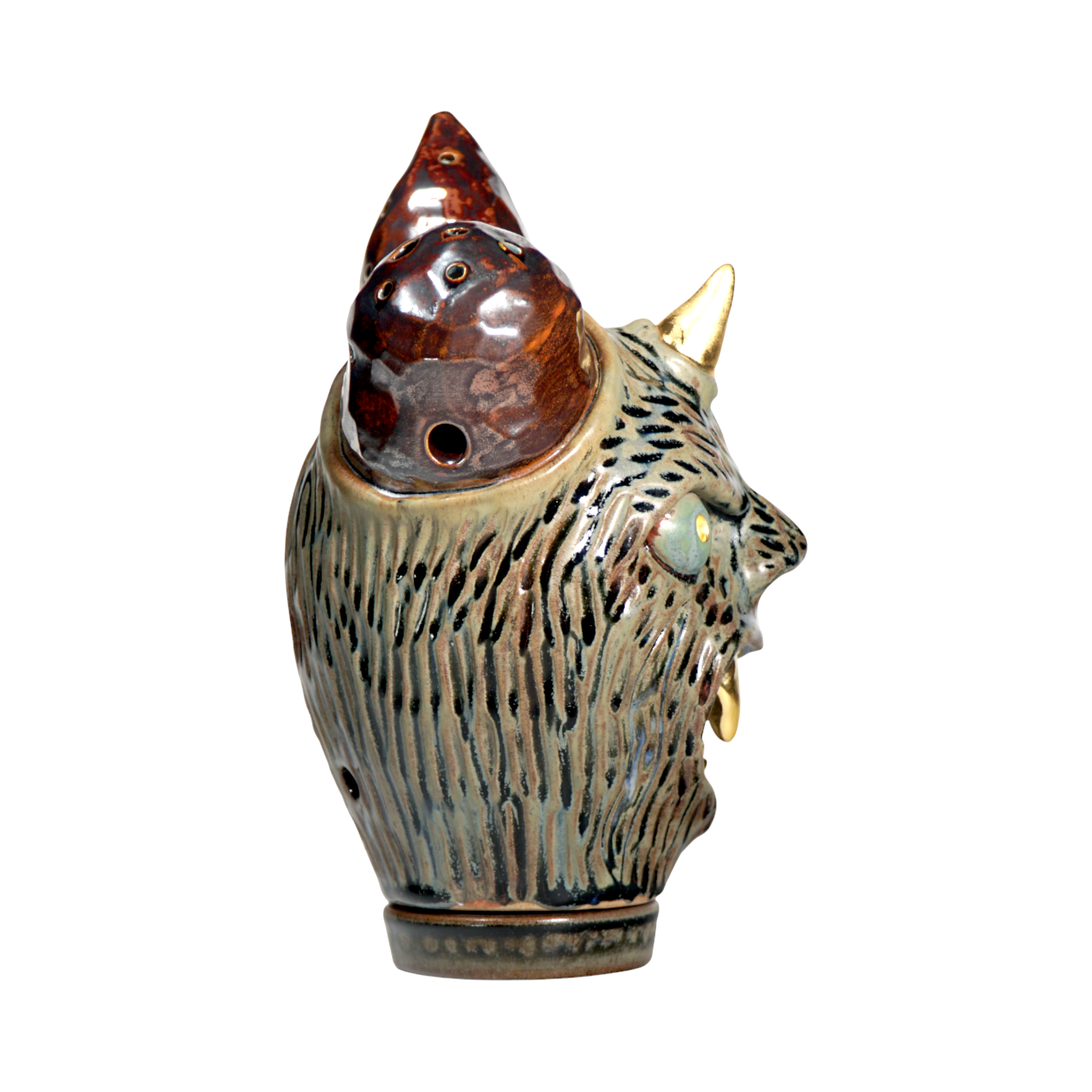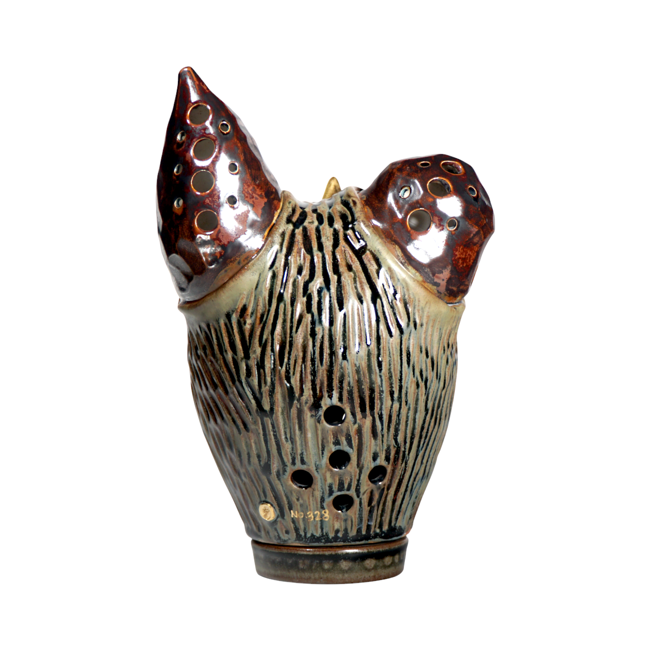 Made by sculpting and wheel throwing, the scent of incense burner spreads subtly through the hollow parts of the lid.
