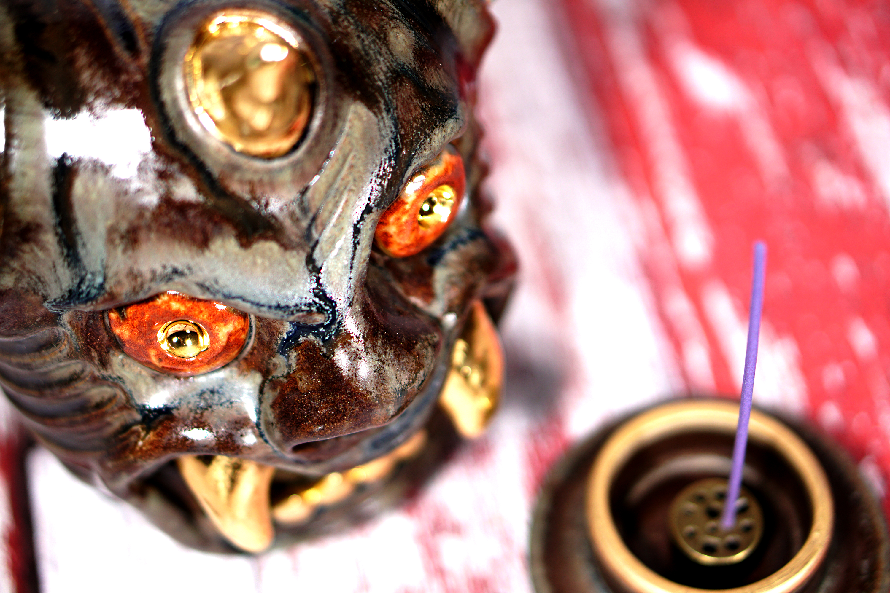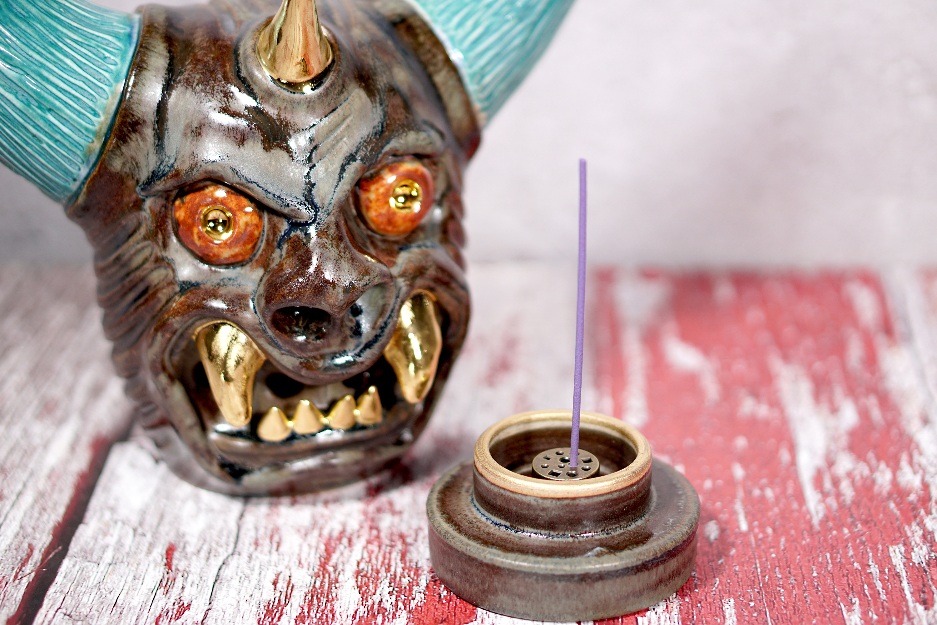Made by sculpting and wheel throwing, the scent of incense burner spreads subtly through the hollow parts of the lid.