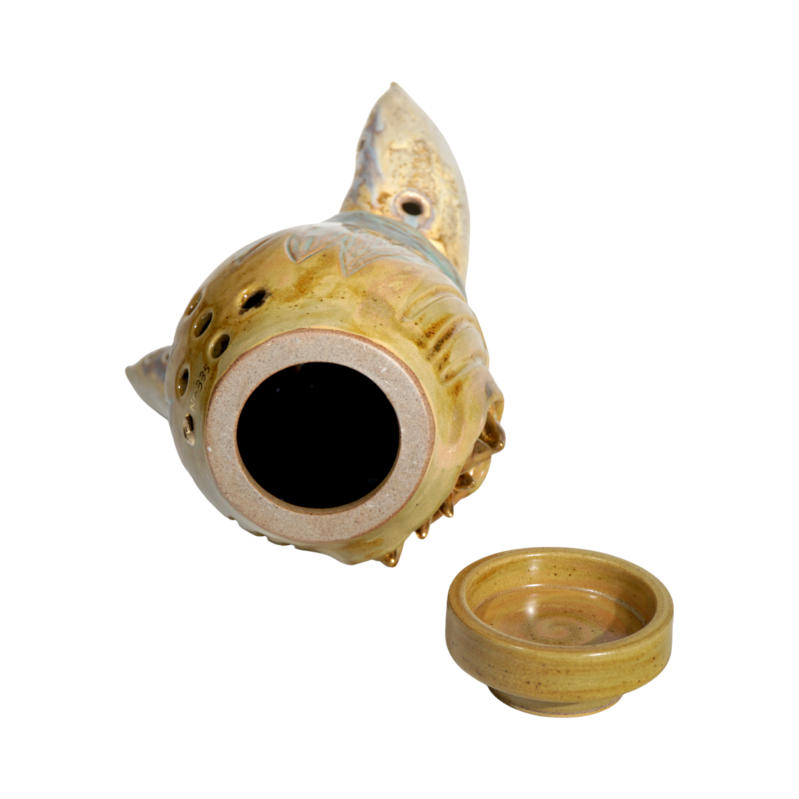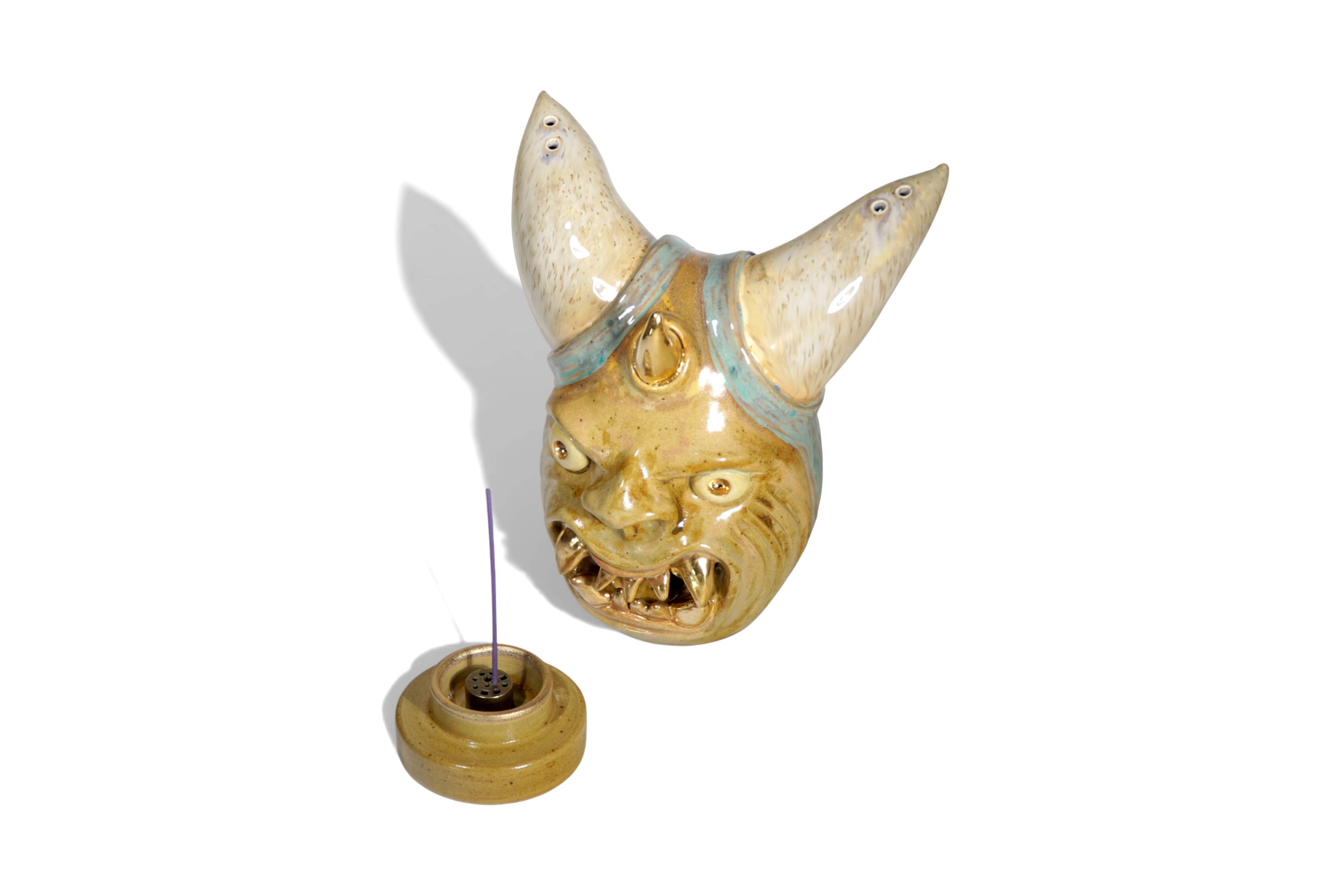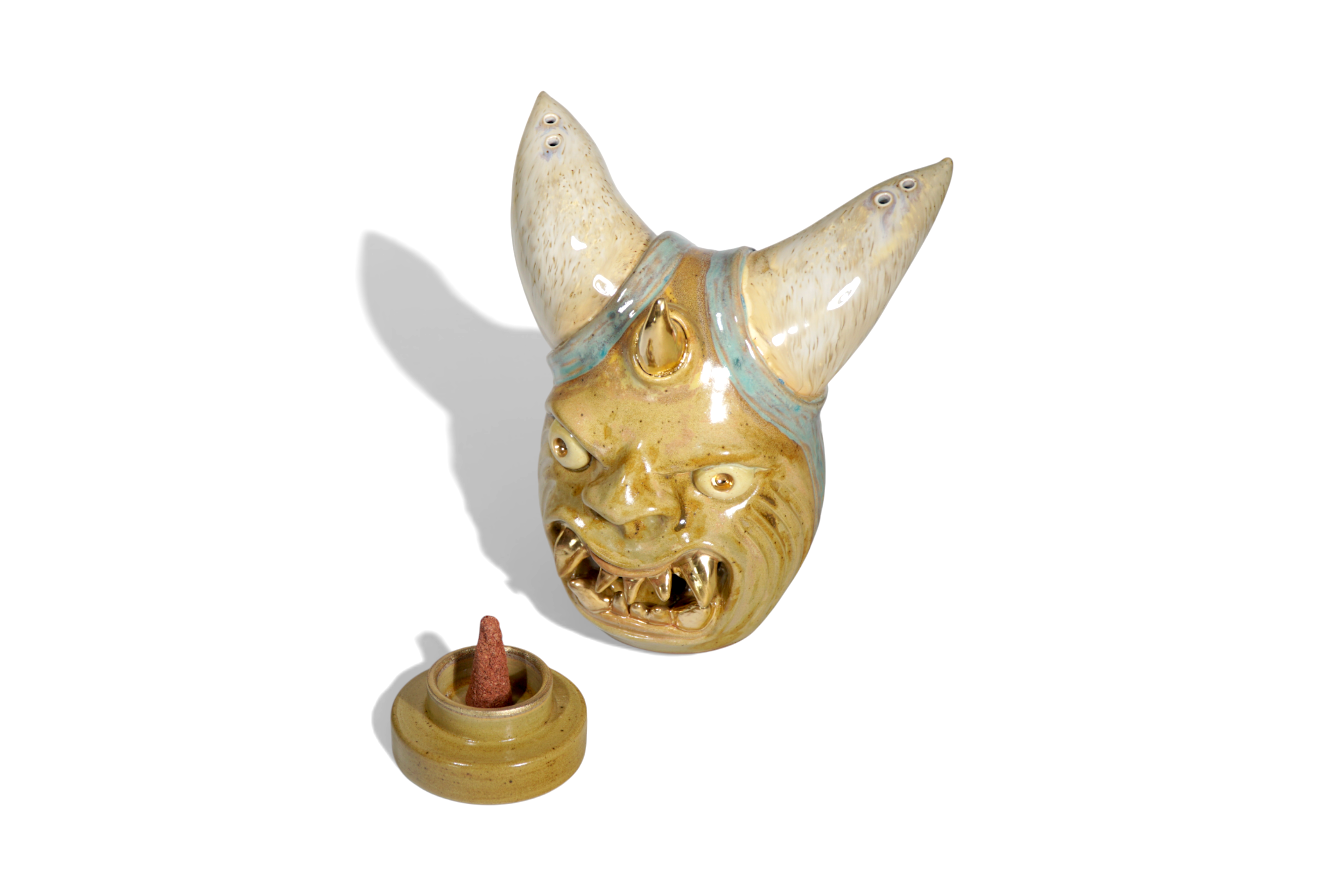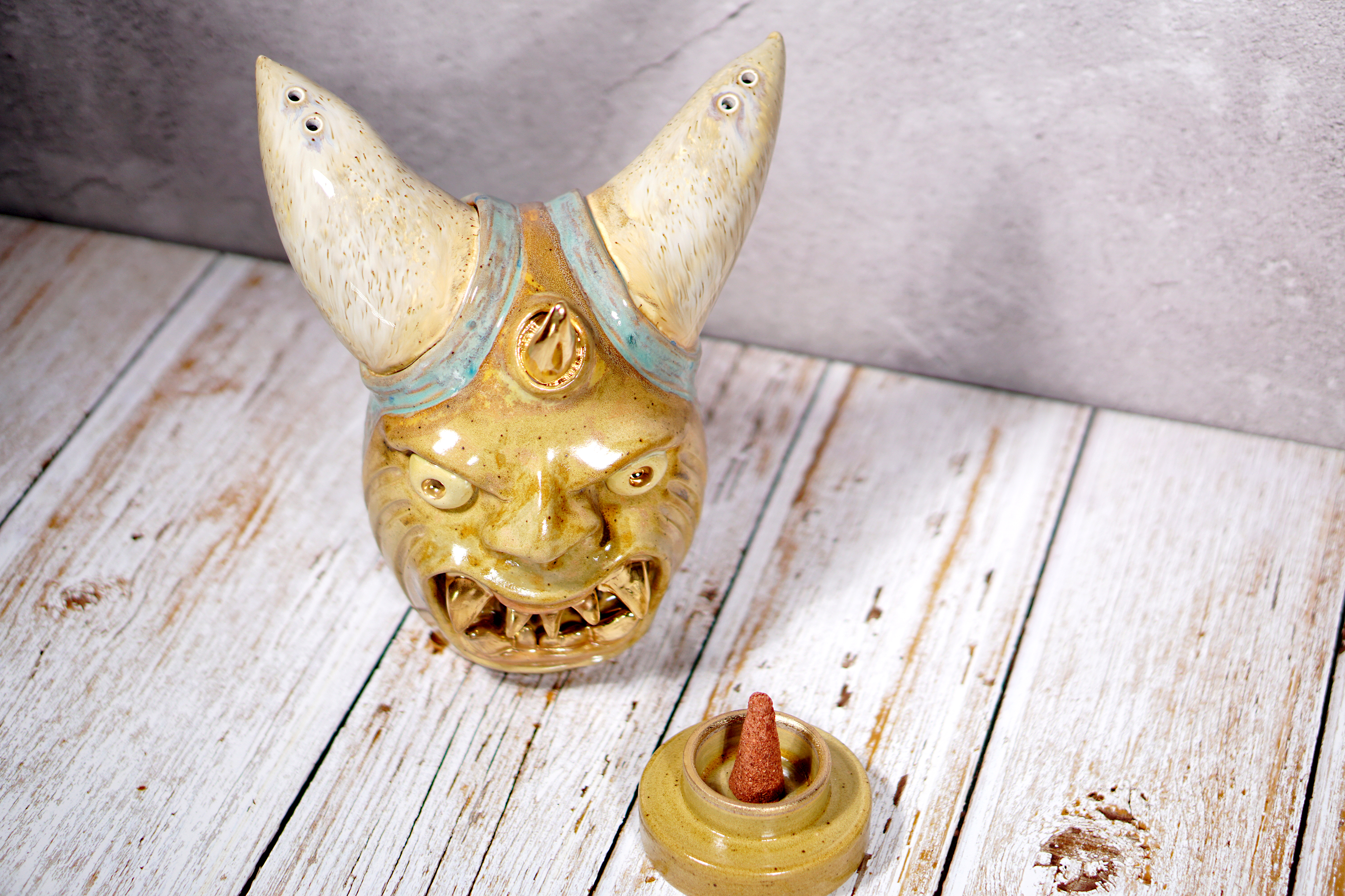 Made by sculpting and wheel throwing, the scent of incense burner spreads subtly through the hollow parts of the lid.