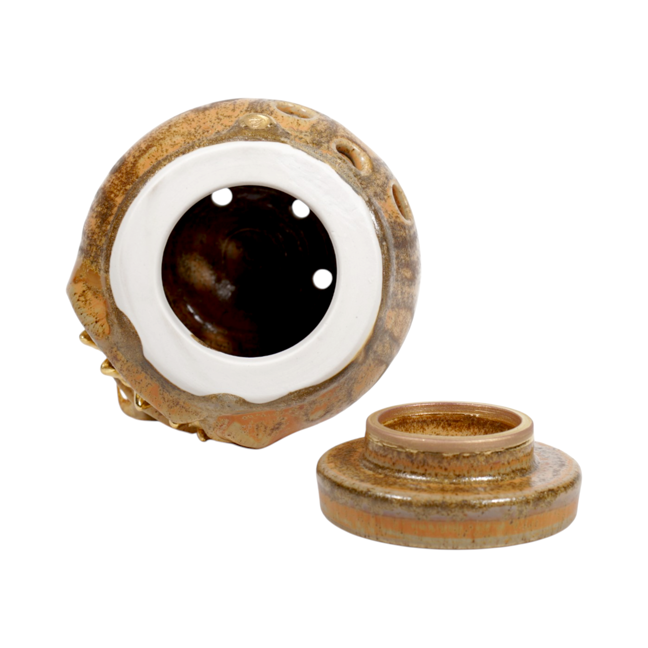 Made by sculpting and wheel throwing, the scent of incense burner spreads subtly through the hollow parts of the lid