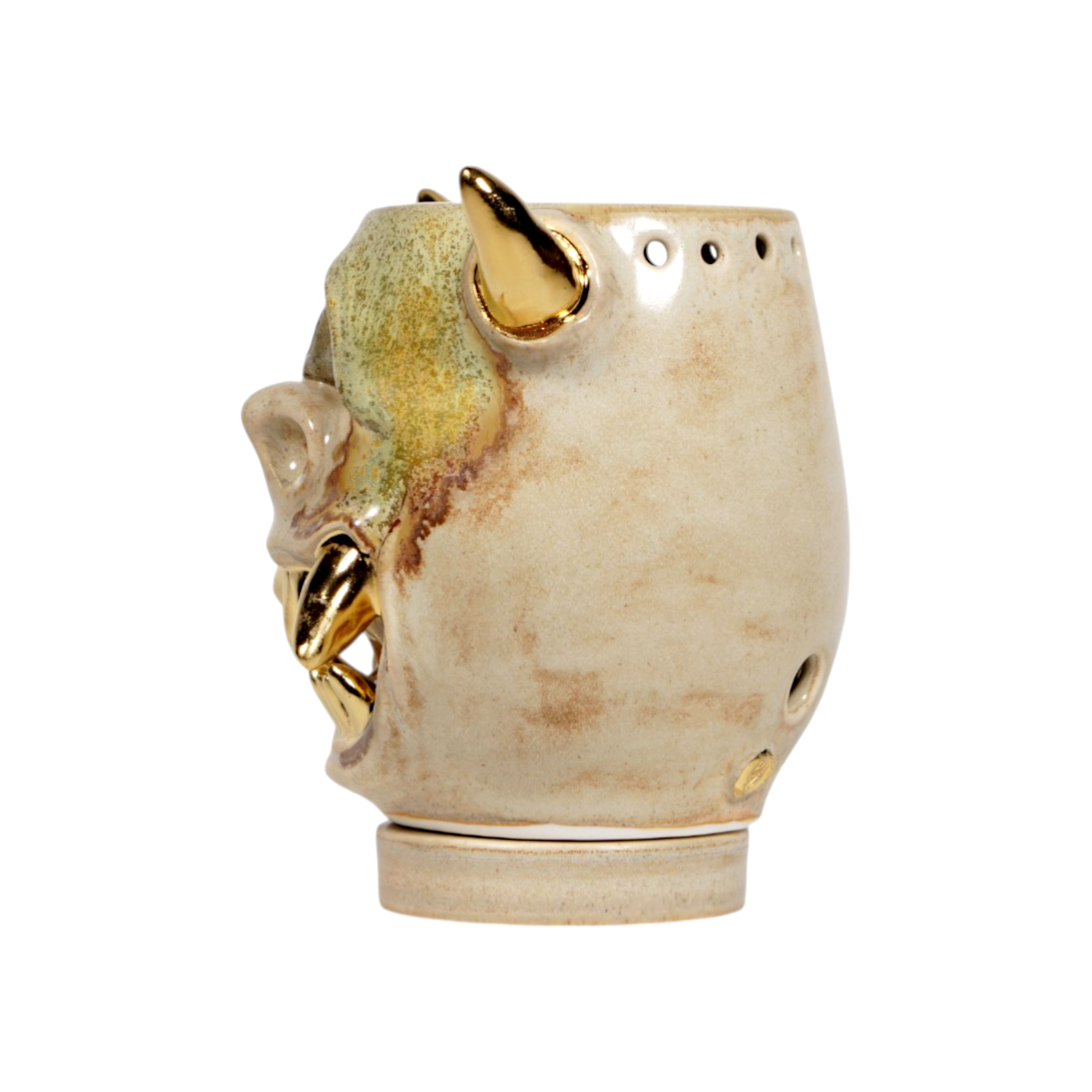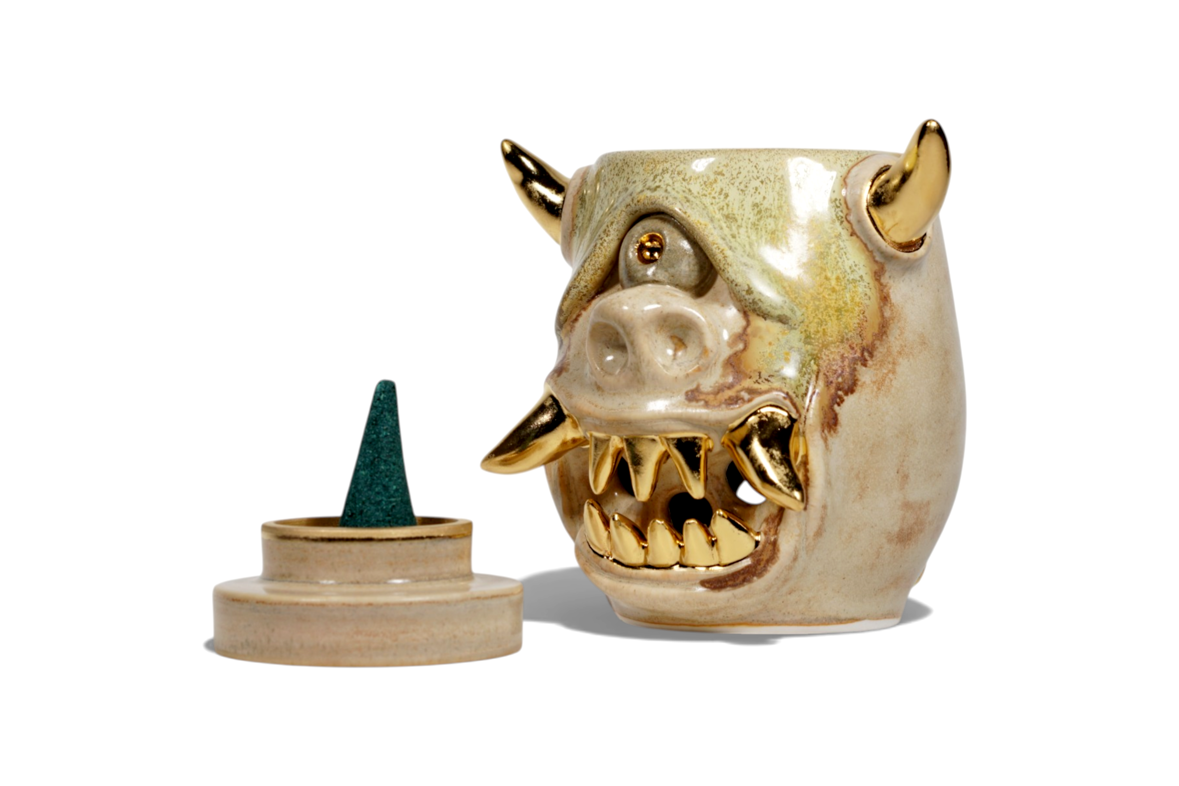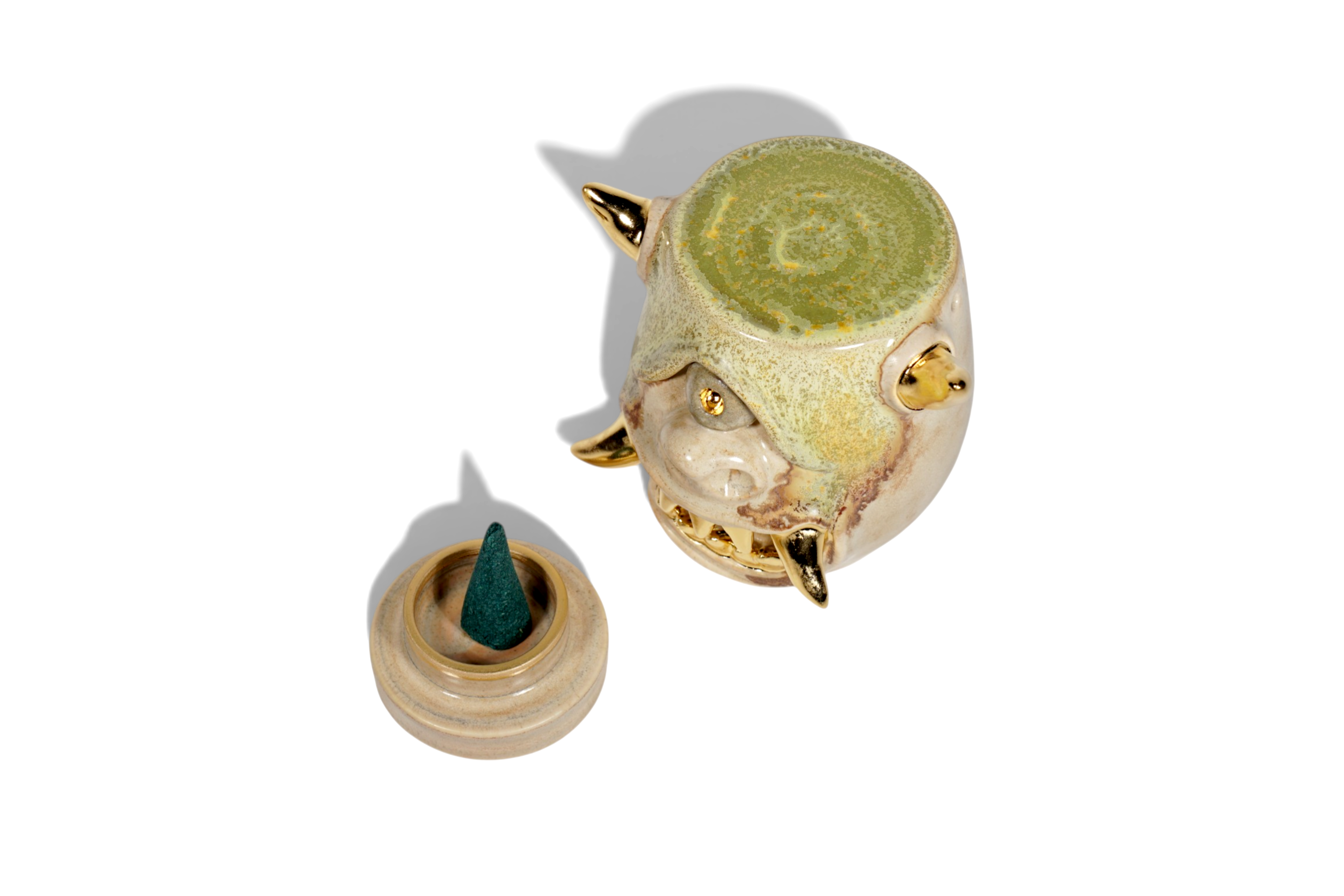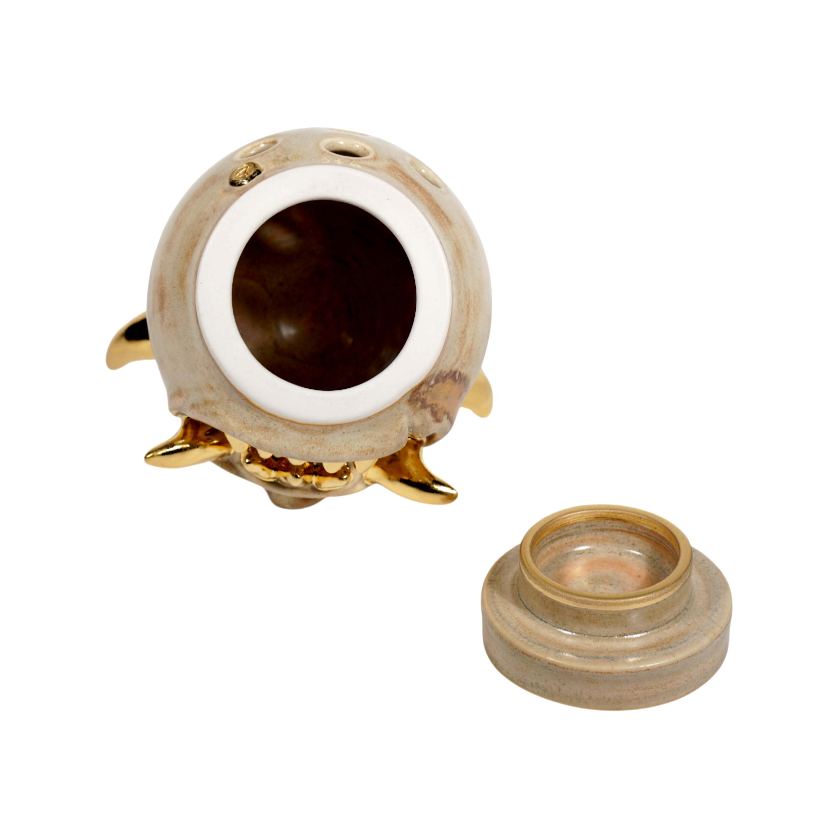 Made by sculpting and wheel throwing, the scent of incense burner spreads subtly through the hollow parts of the lid.