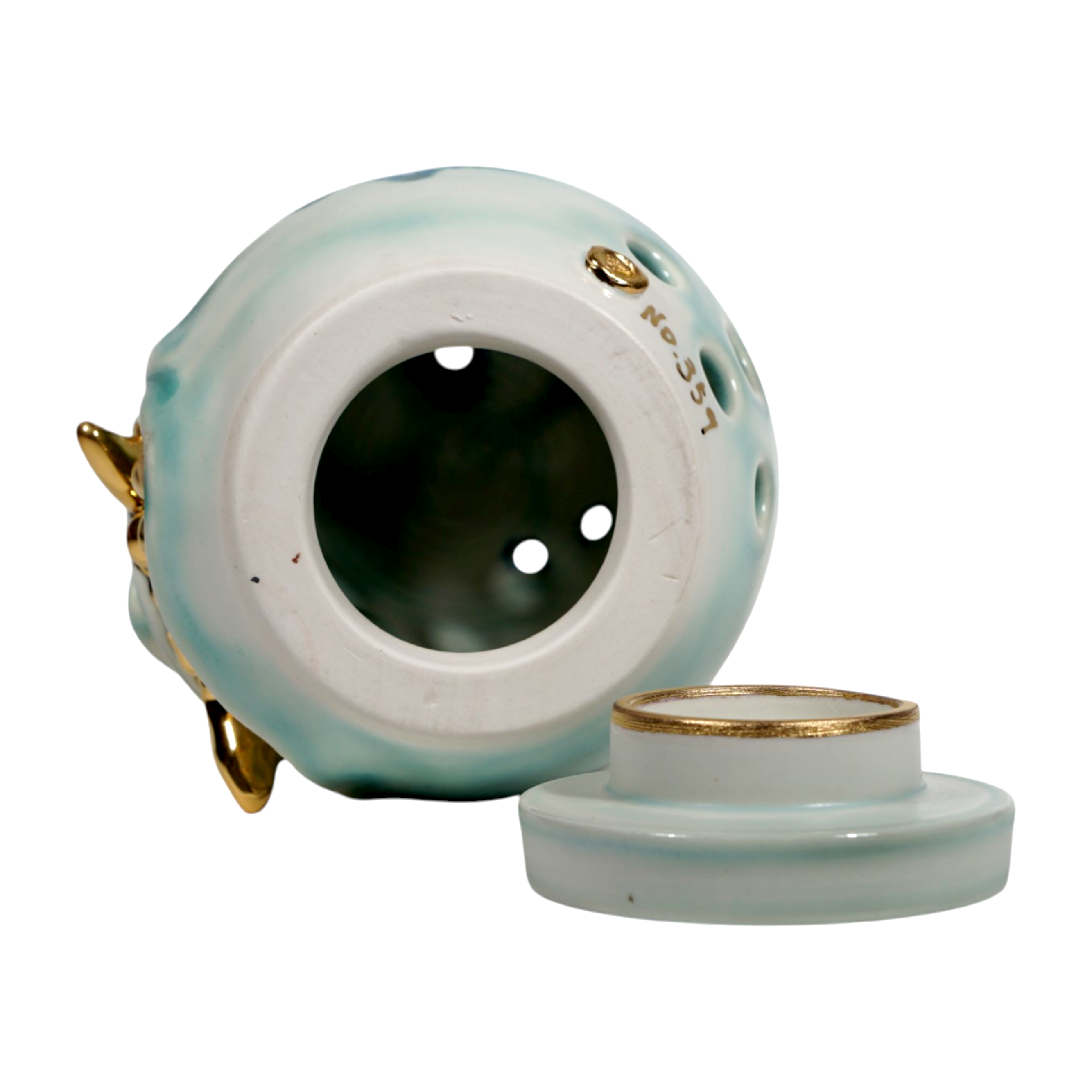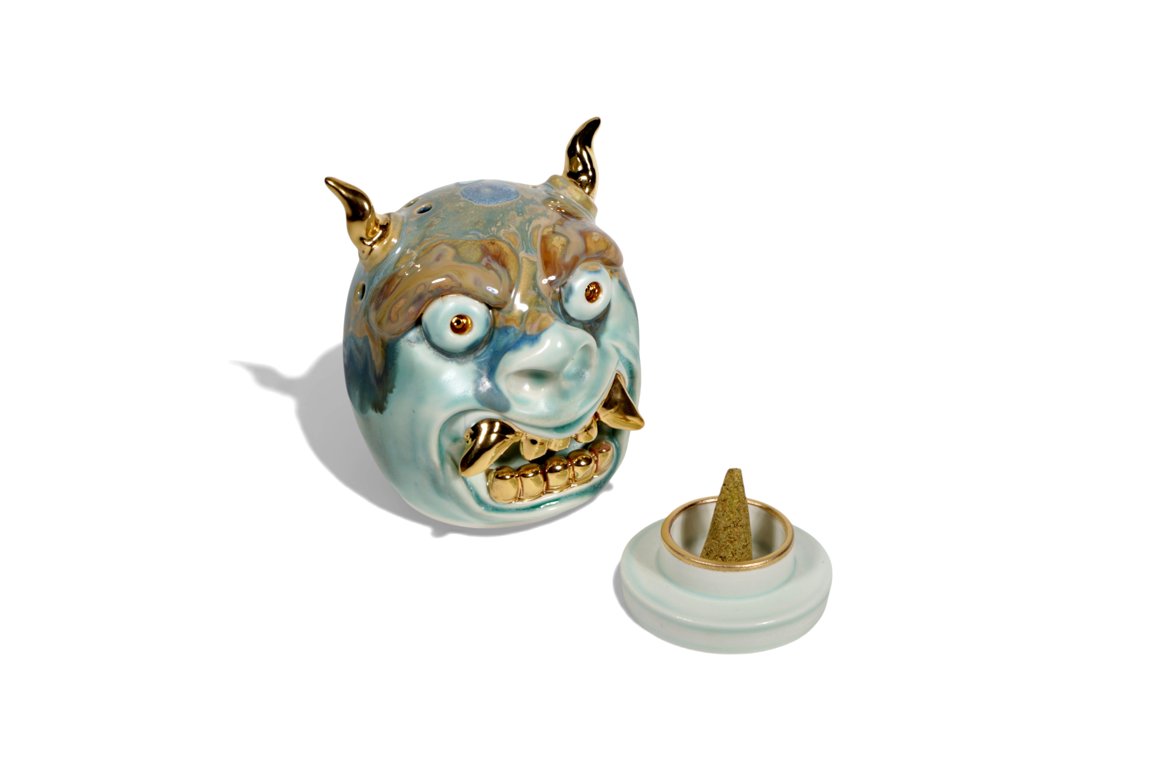 Made by sculpting and wheel throwing, the scent of incense burner spreads subtly through the hollow parts of the lid.