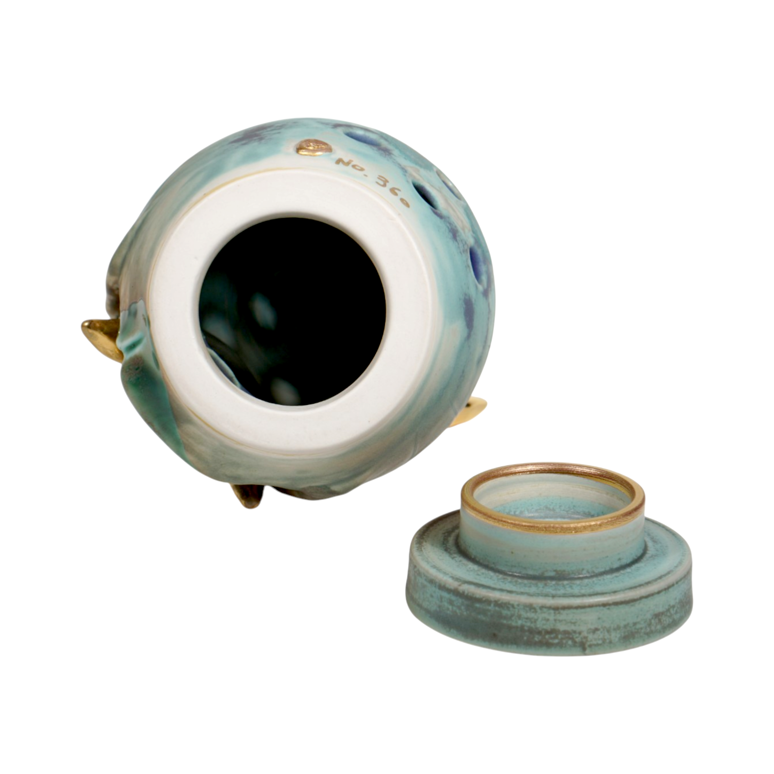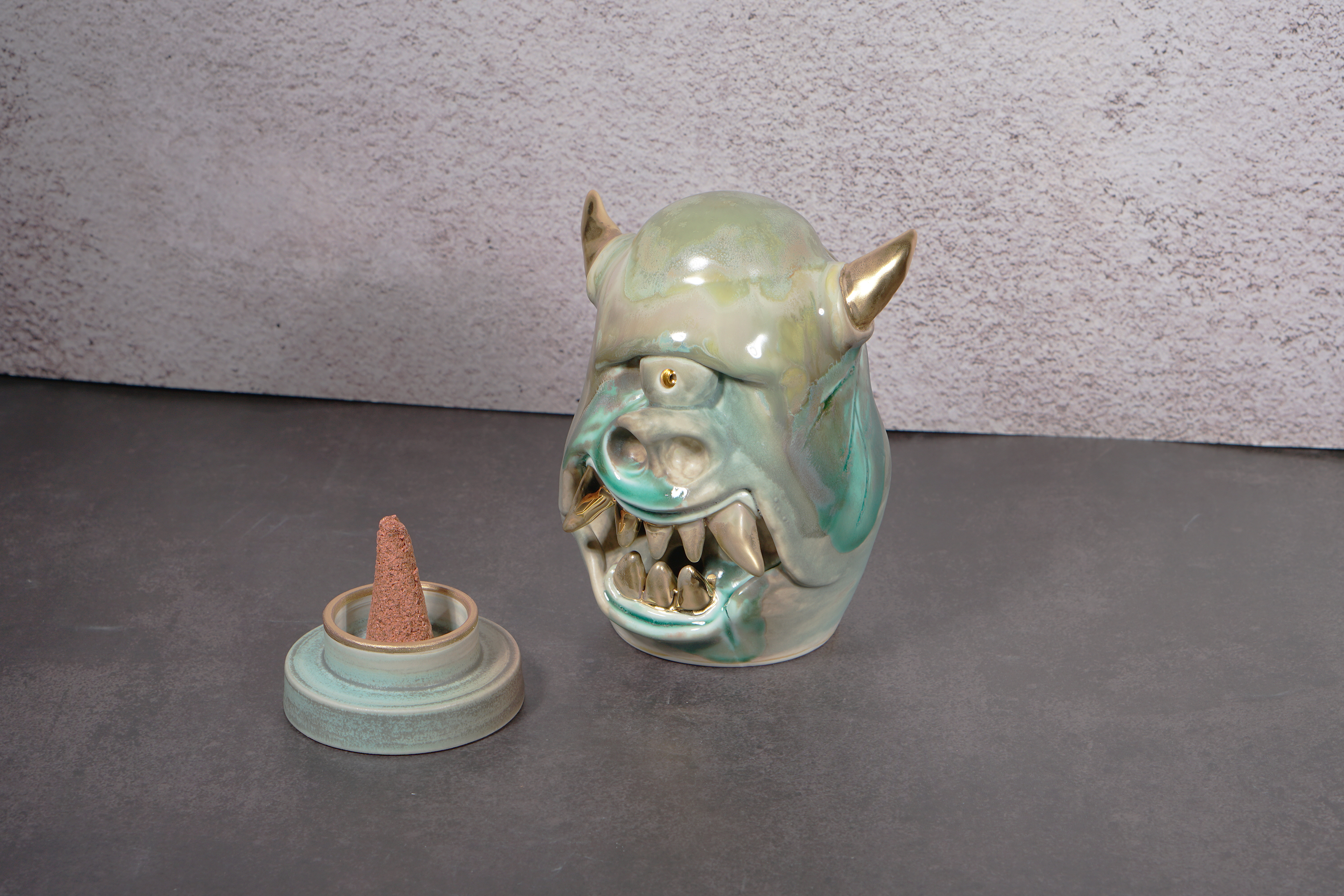 Made by sculpting and wheel throwing, the scent of incense burner spreads subtly through the hollow parts of the lid