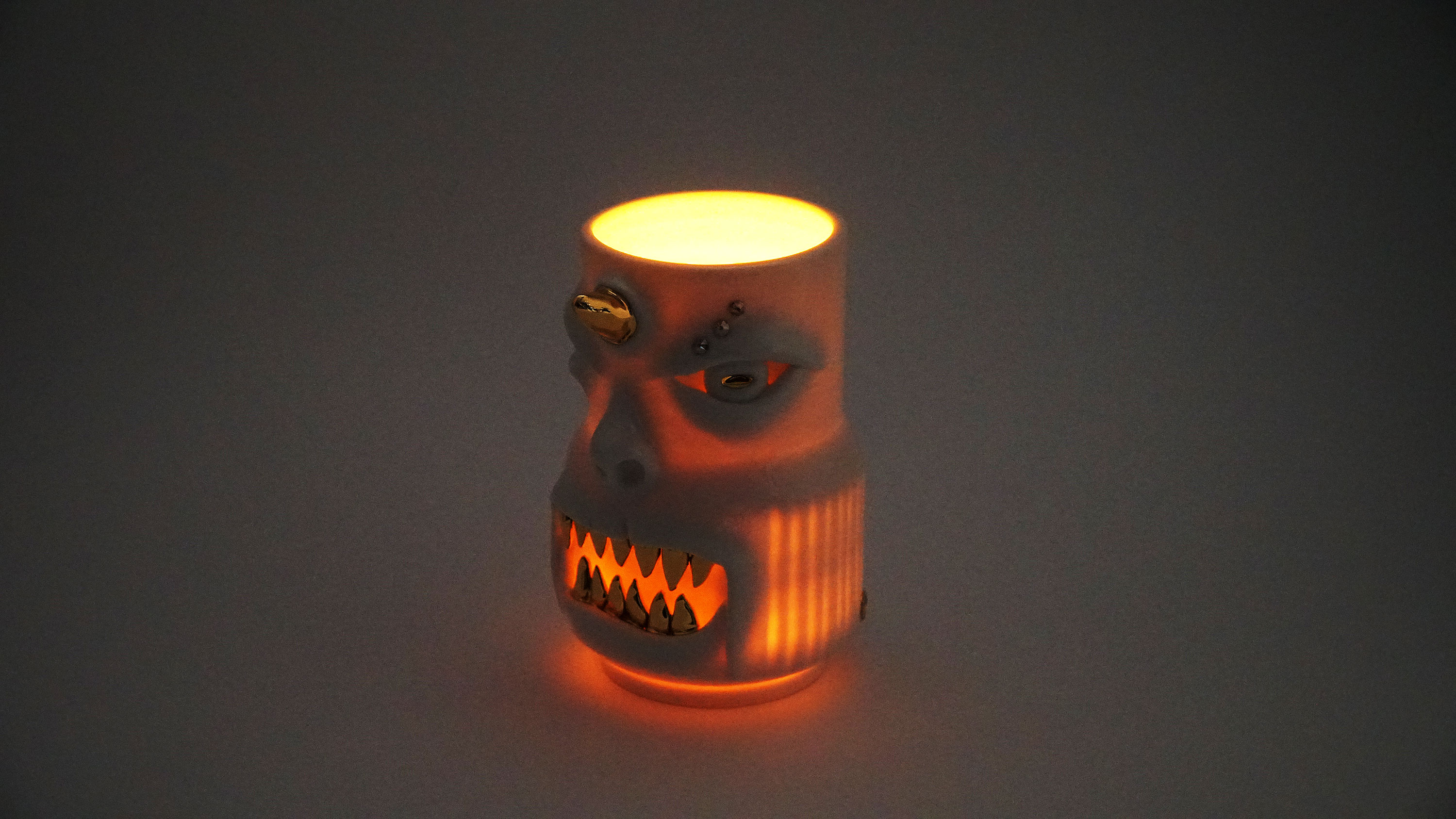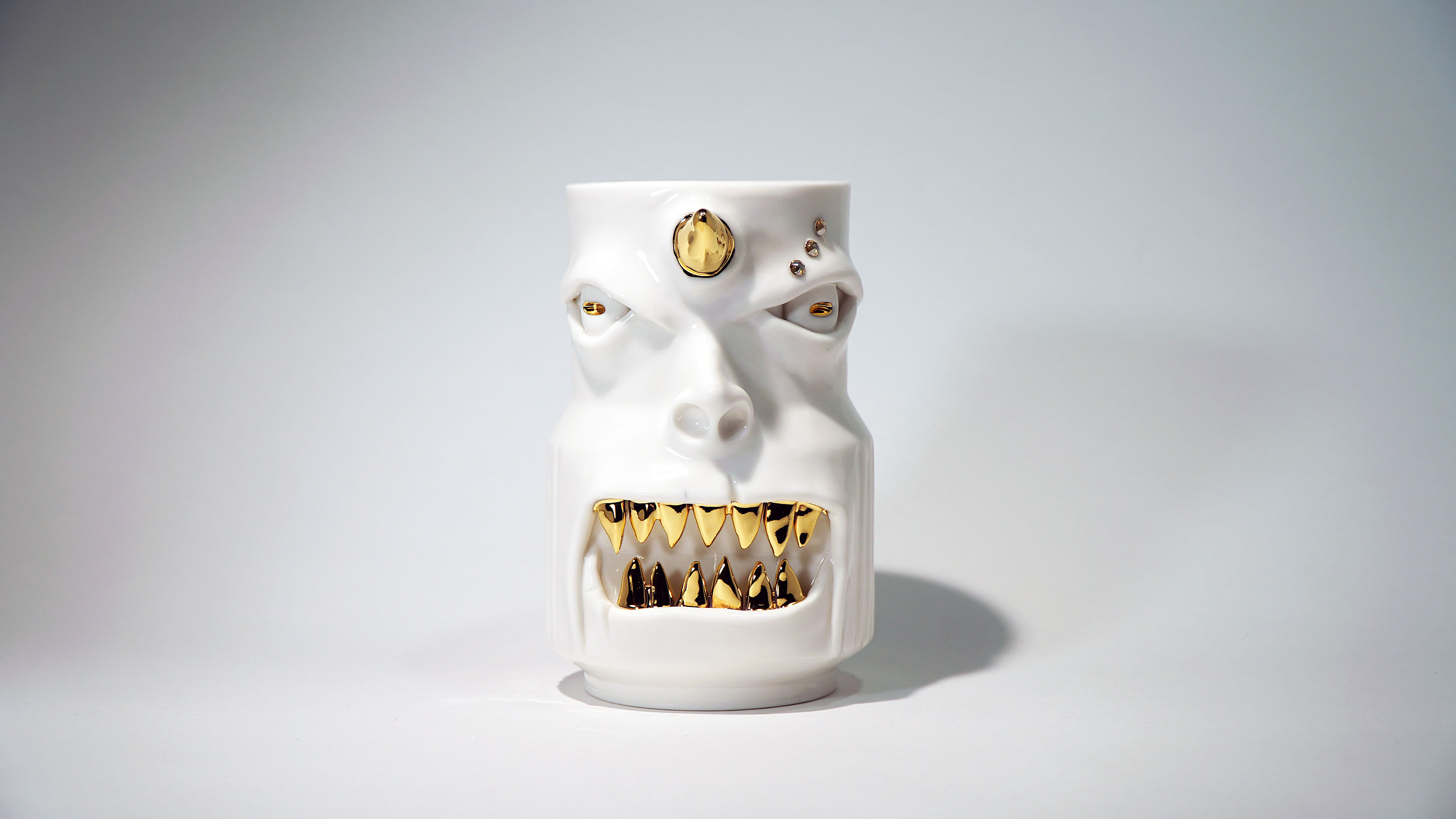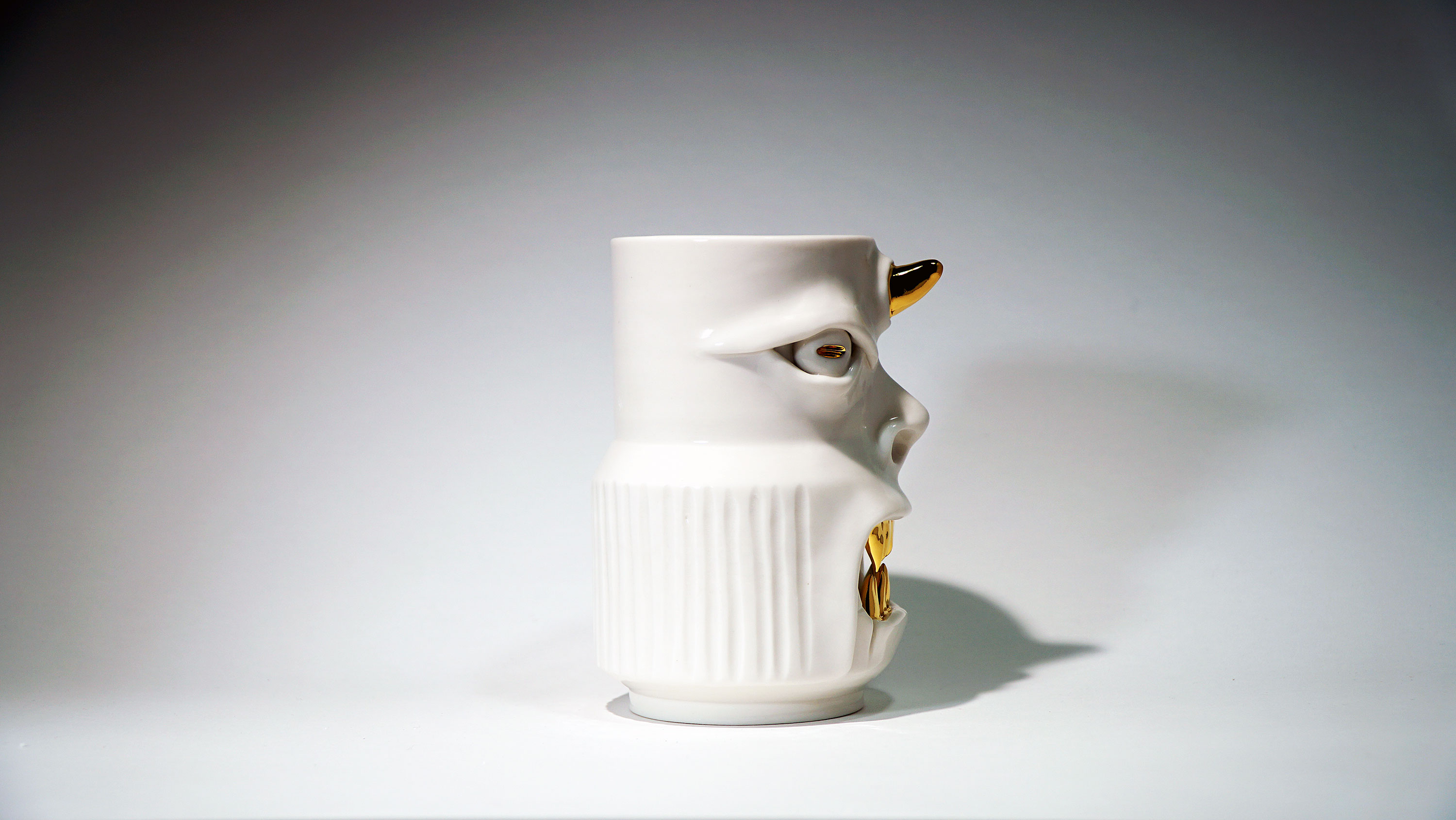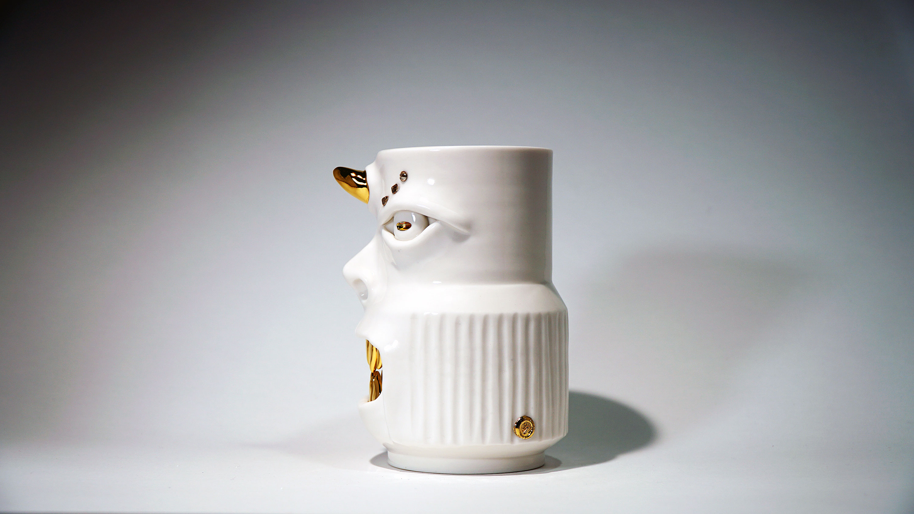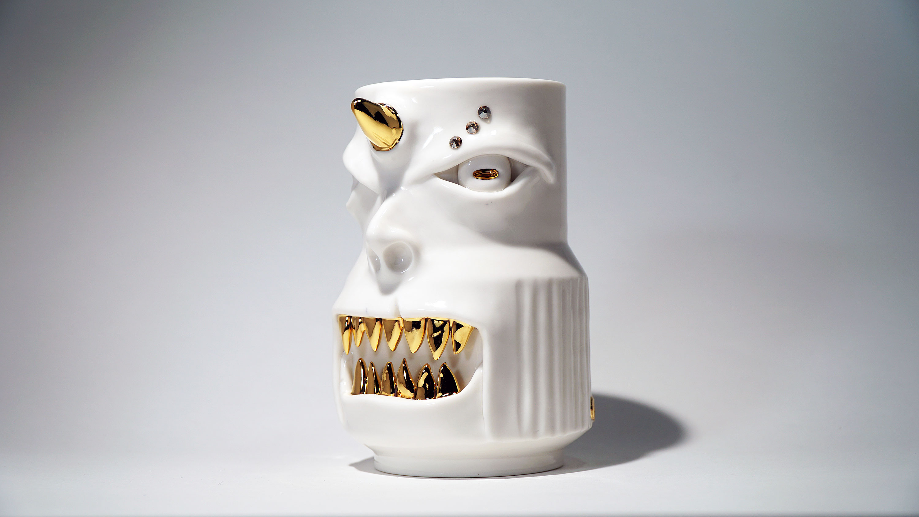 화이트와 골드로 디자인 한 돗가비 화병은 빛을 투과 시켜 은은한 빛을 만들어낸다.