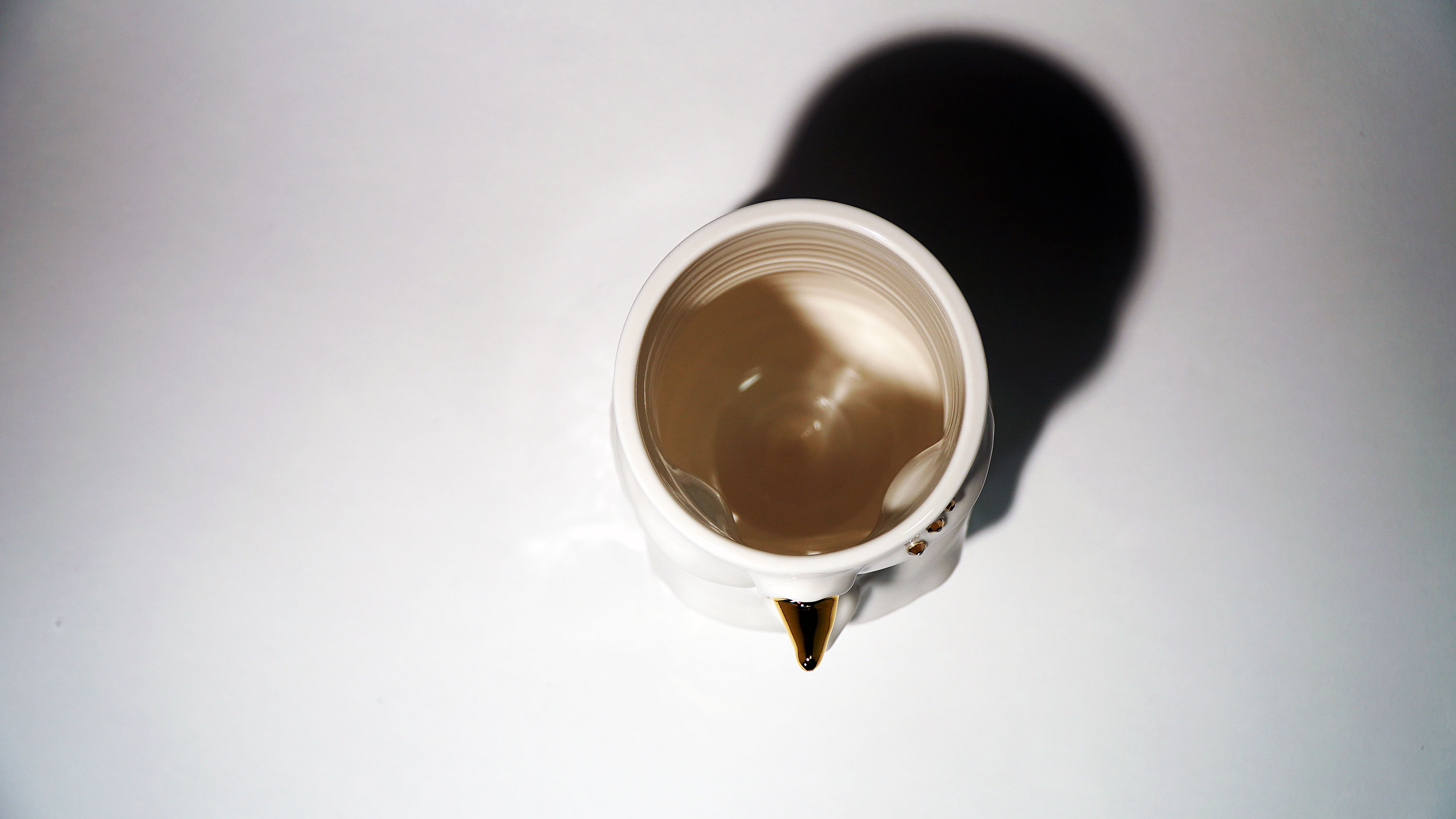 Dogabi Flower Vase is crafted with white porcelain clay and gold metallic glaze as an accent.