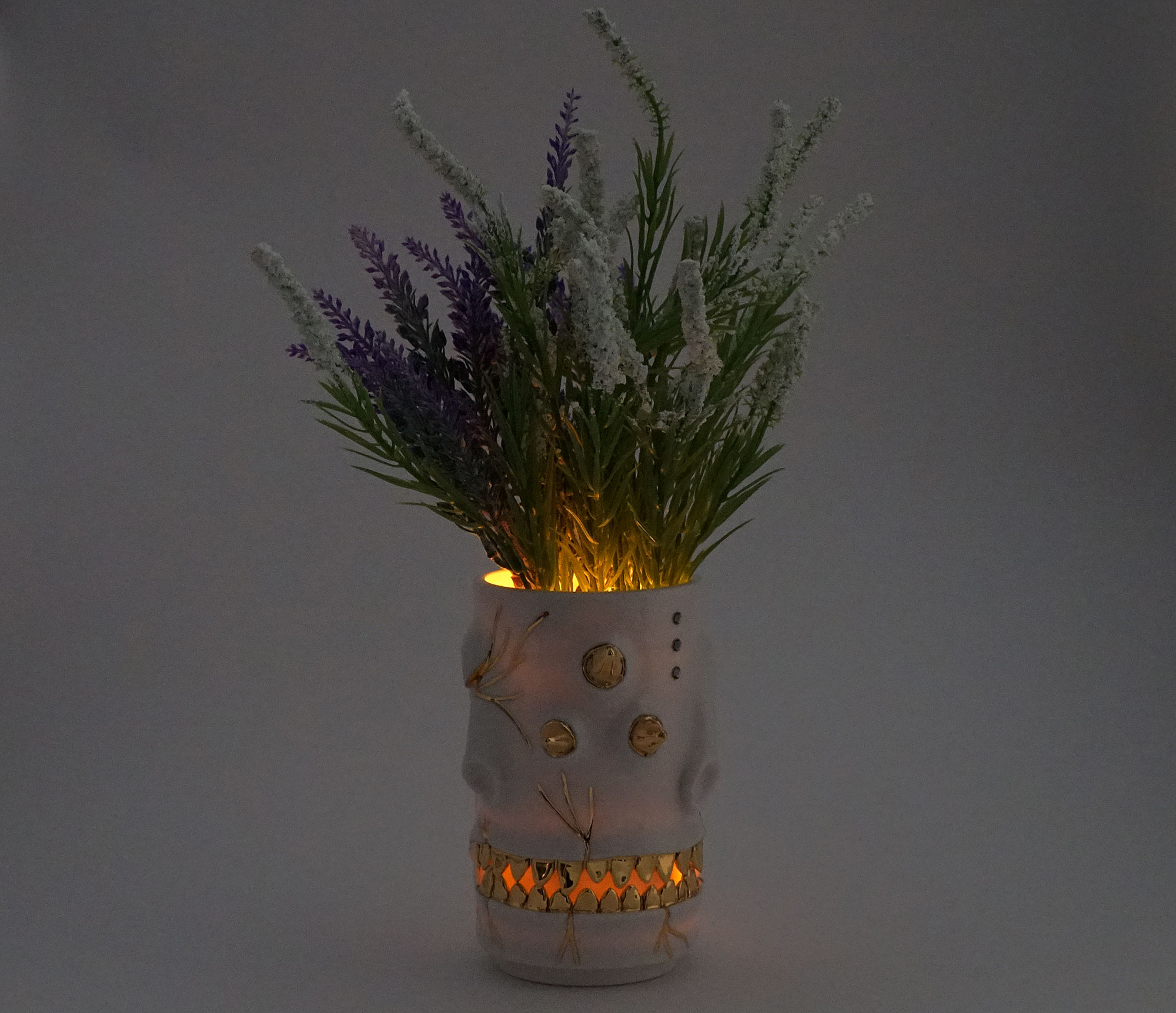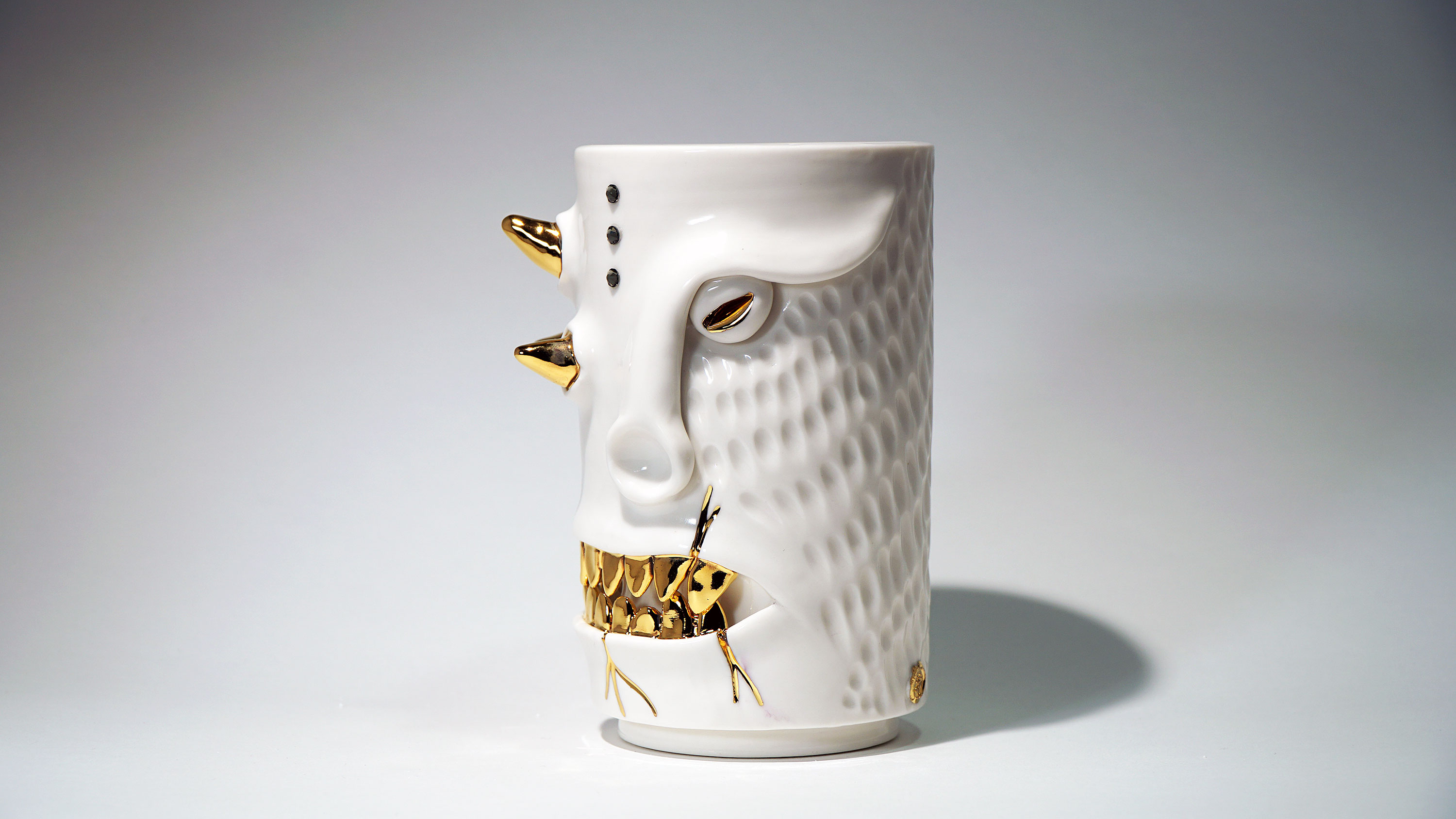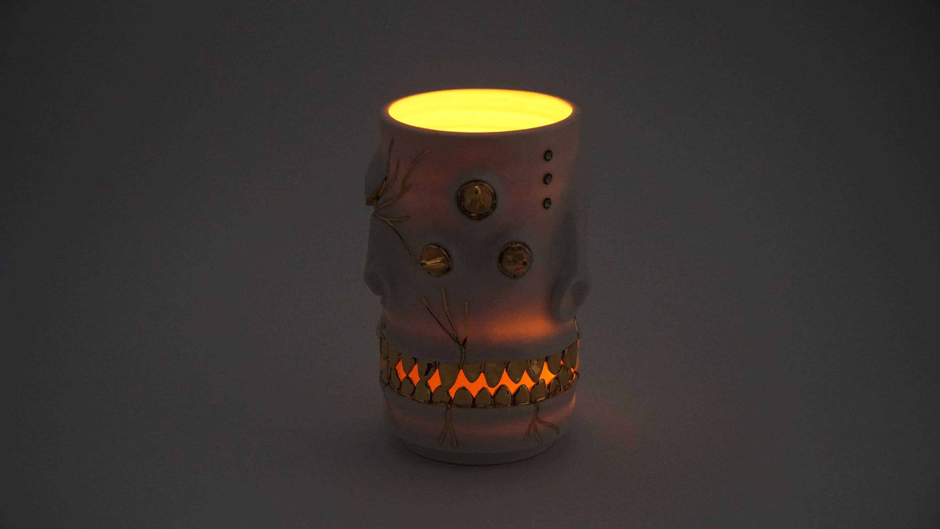 화이트와 골드로 디자인 한 돗가비 화병은 빛을 투과 시켜 은은한 빛을 만들어낸다.