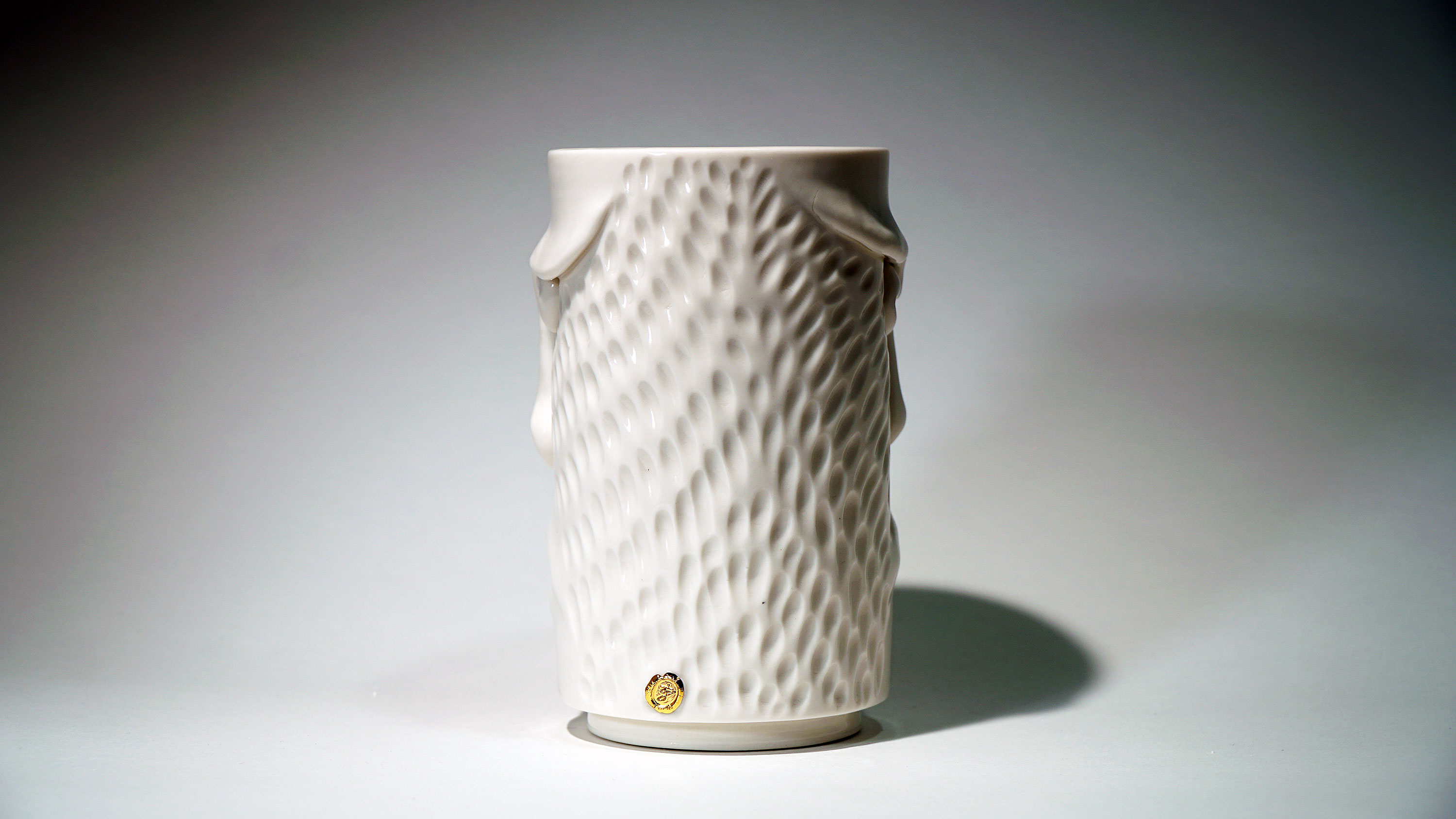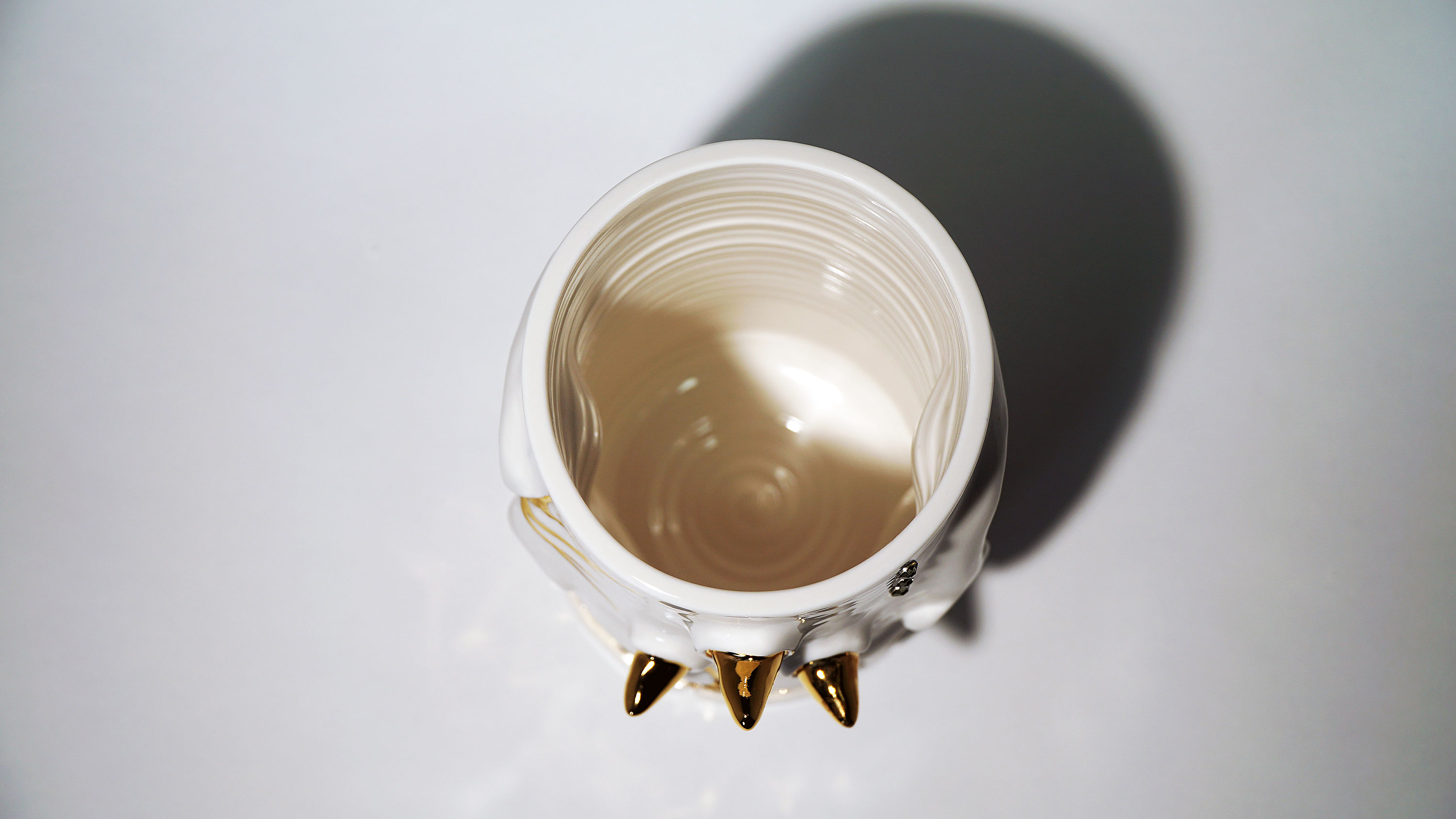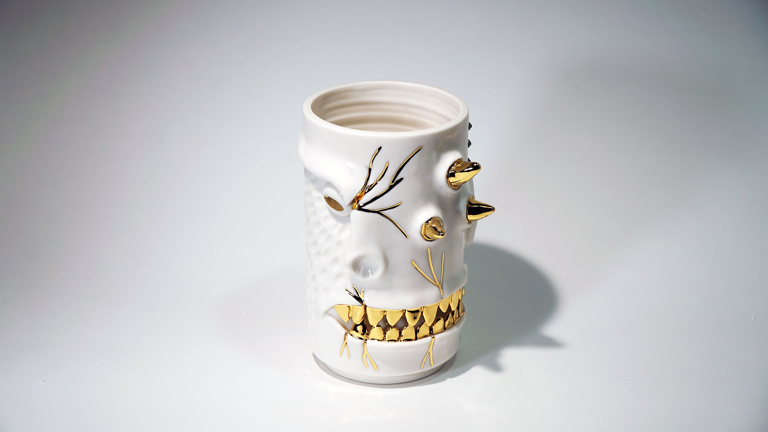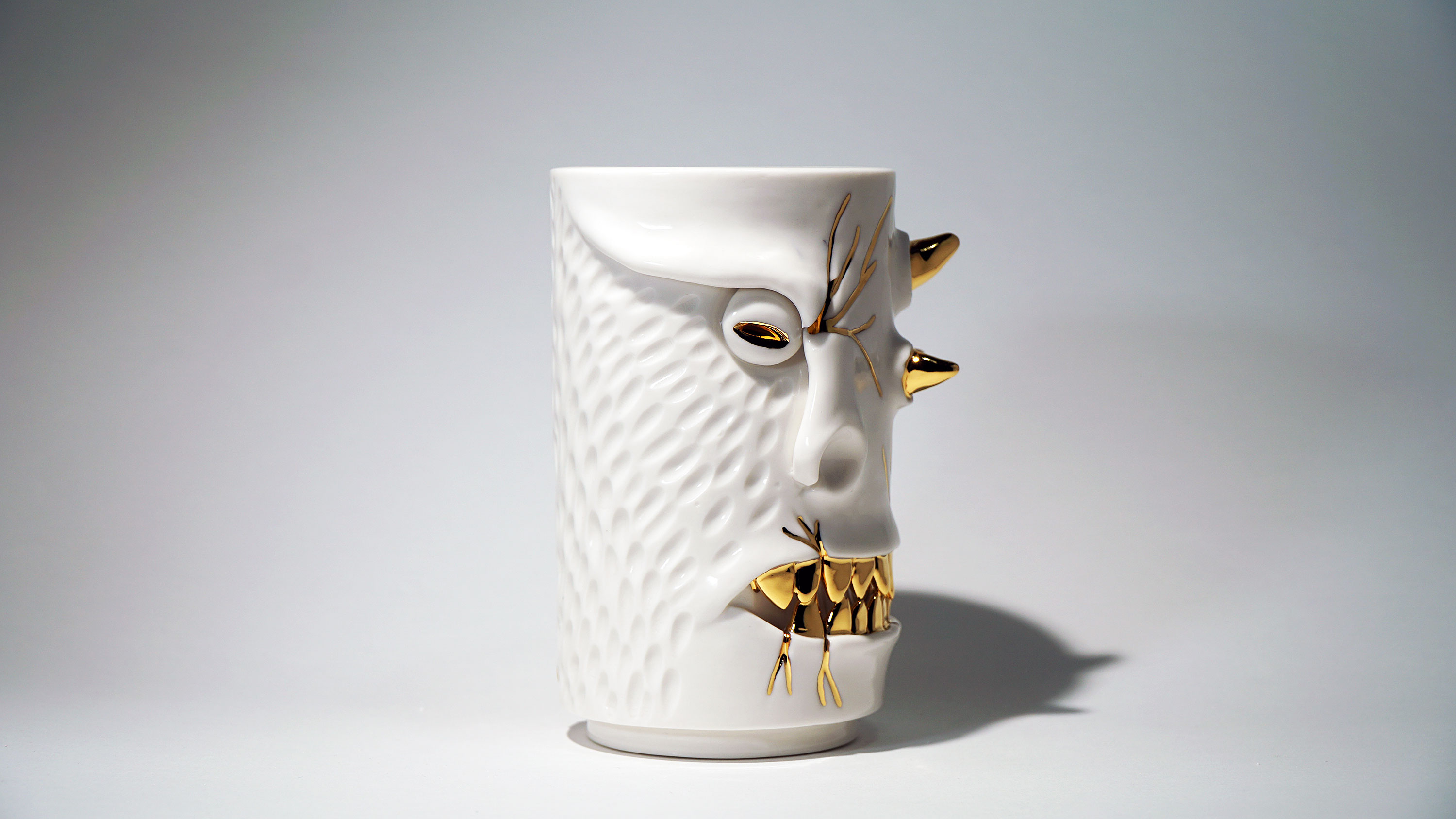 화이트와 골드로 디자인 한 돗가비 화병은 빛을 투과 시켜 은은한 빛을 만들어낸다.