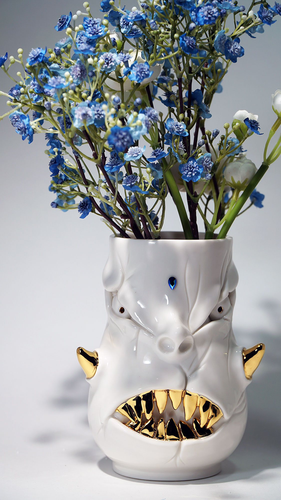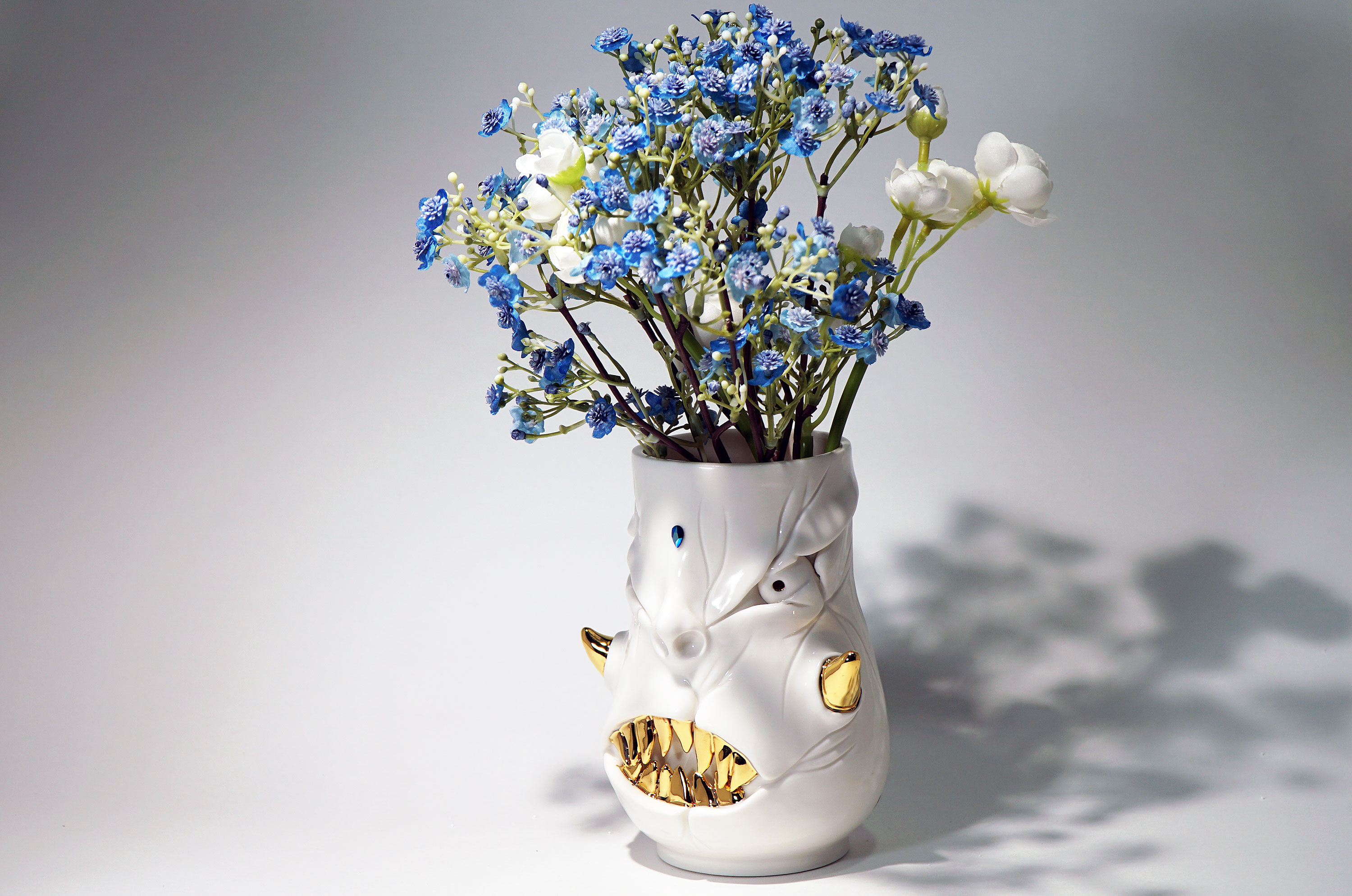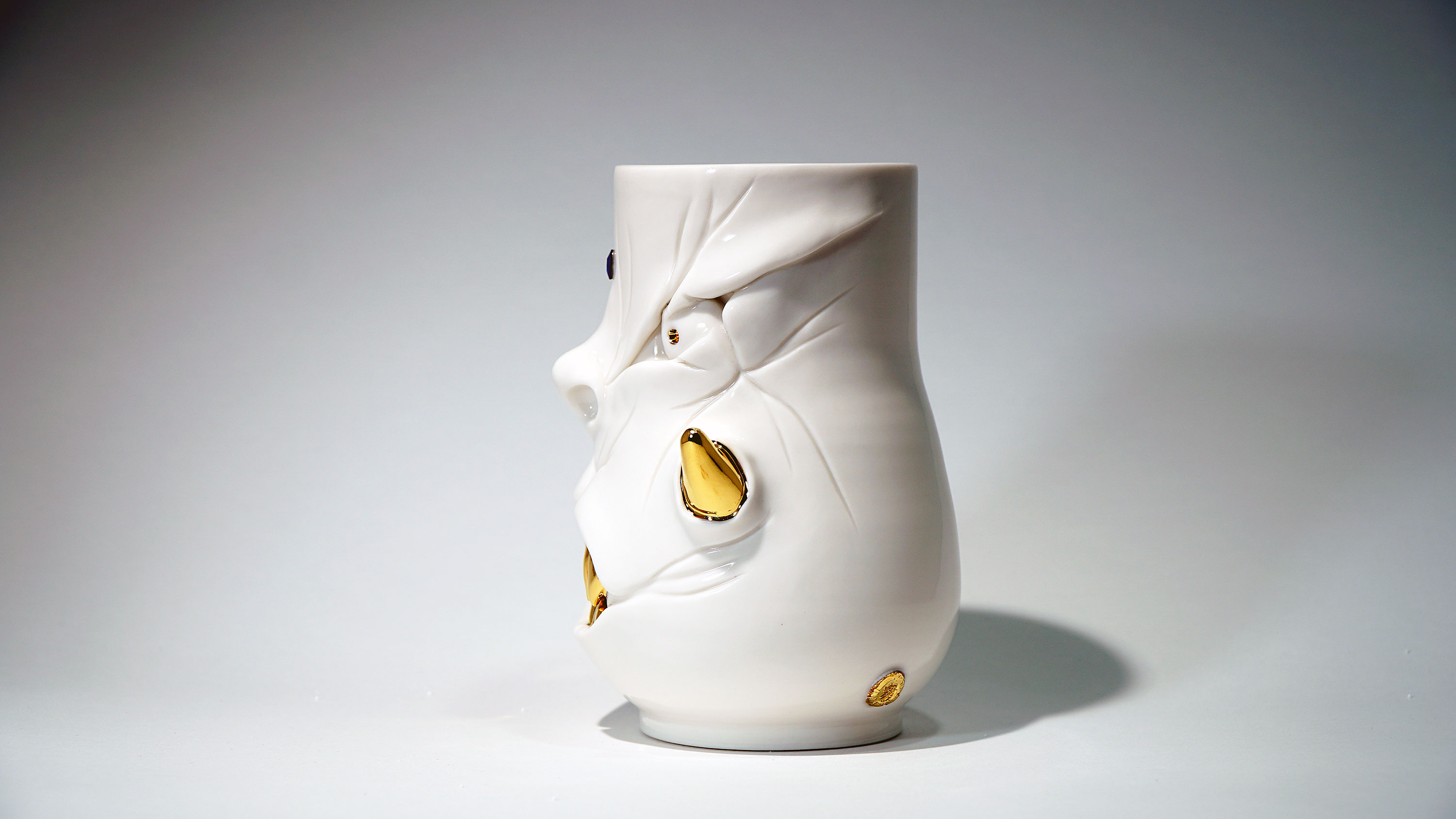 화이트와 골드로 디자인 한 돗가비 화병은 빛을 투과 시켜 은은한 빛을 만들어낸다.