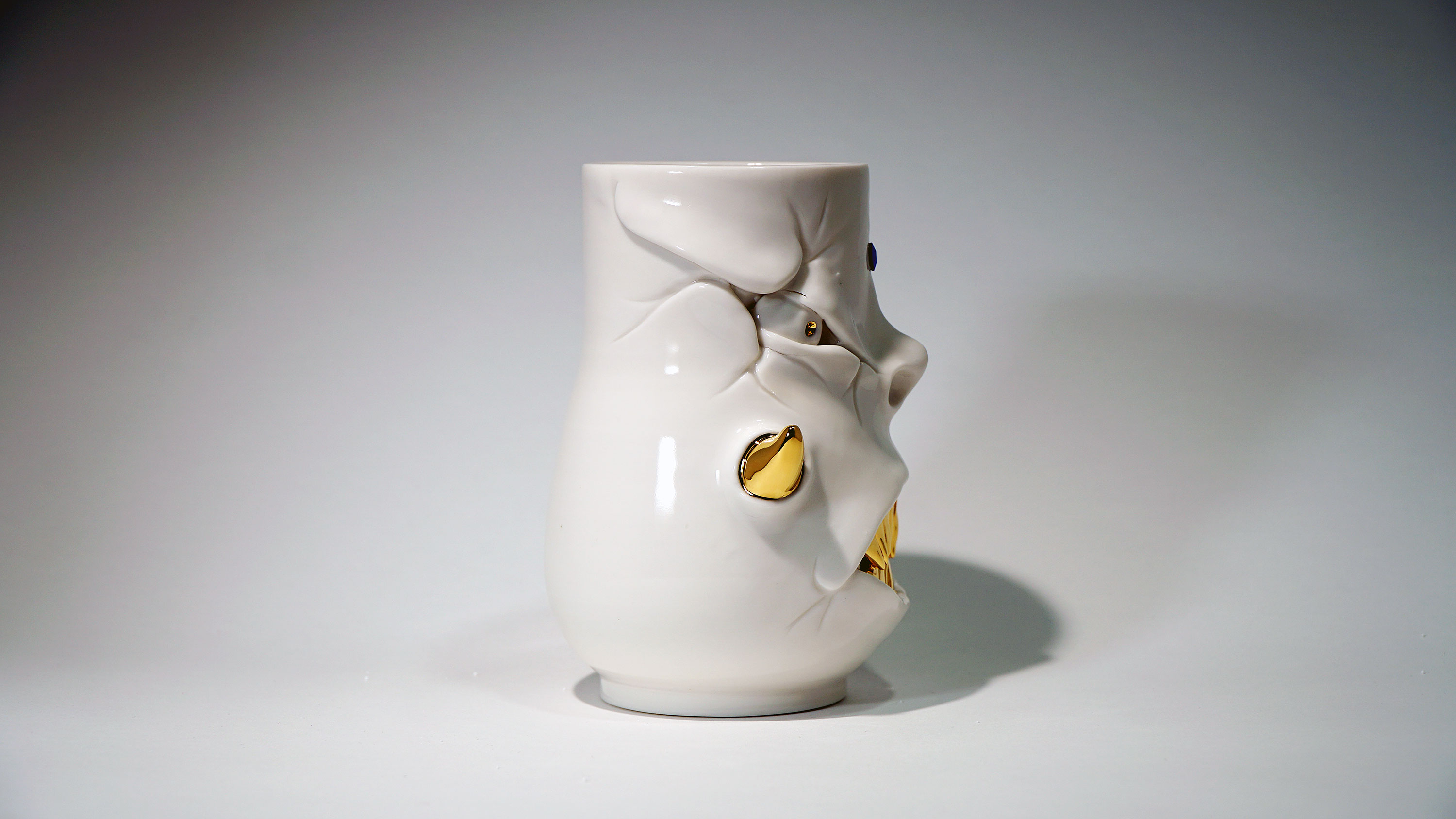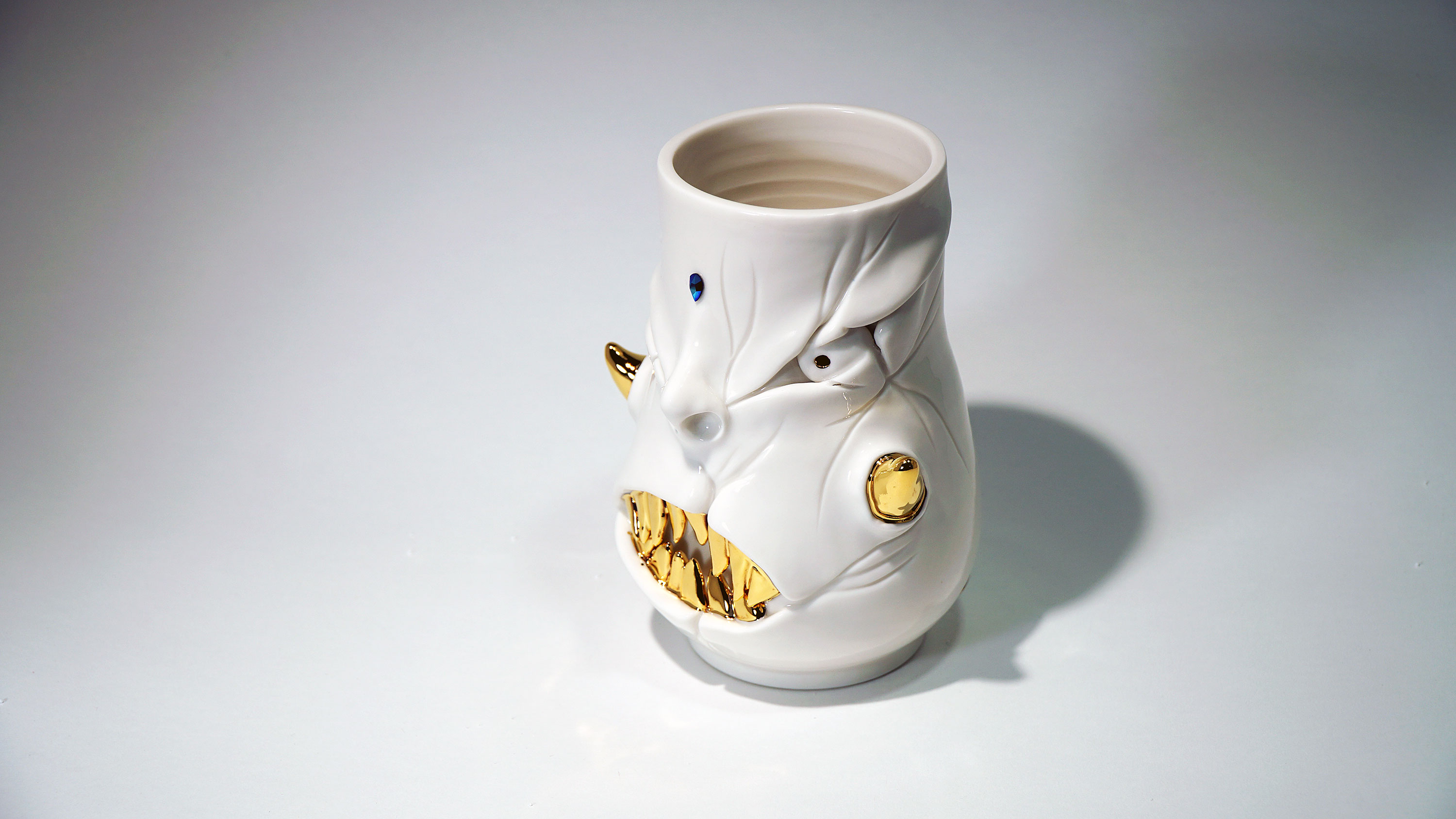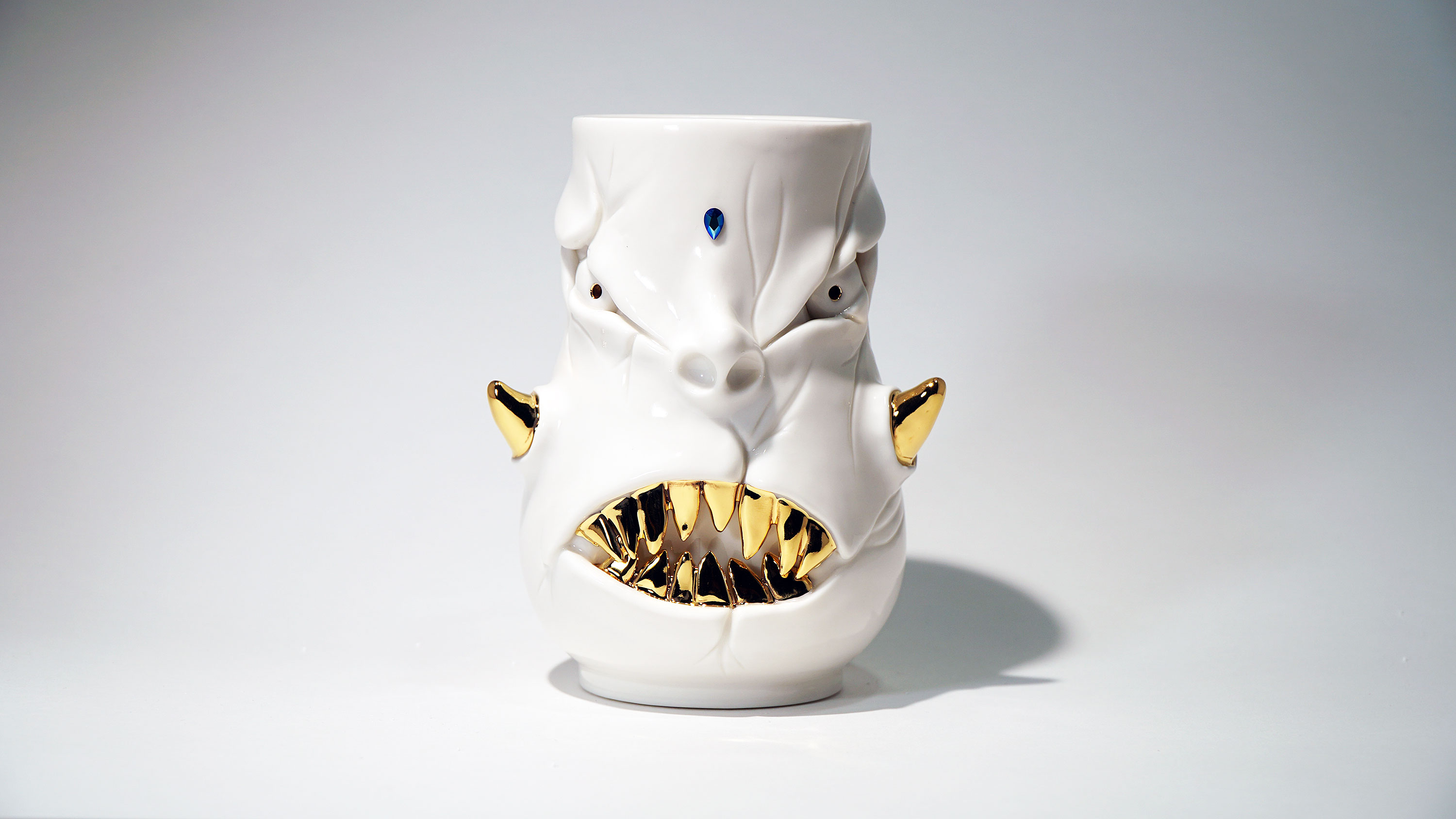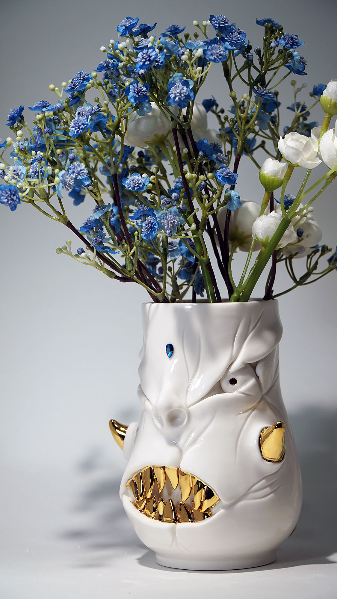 화이트와 골드로 디자인 한 돗가비 화병은 빛을 투과 시켜 은은한 빛을 만들어낸다.