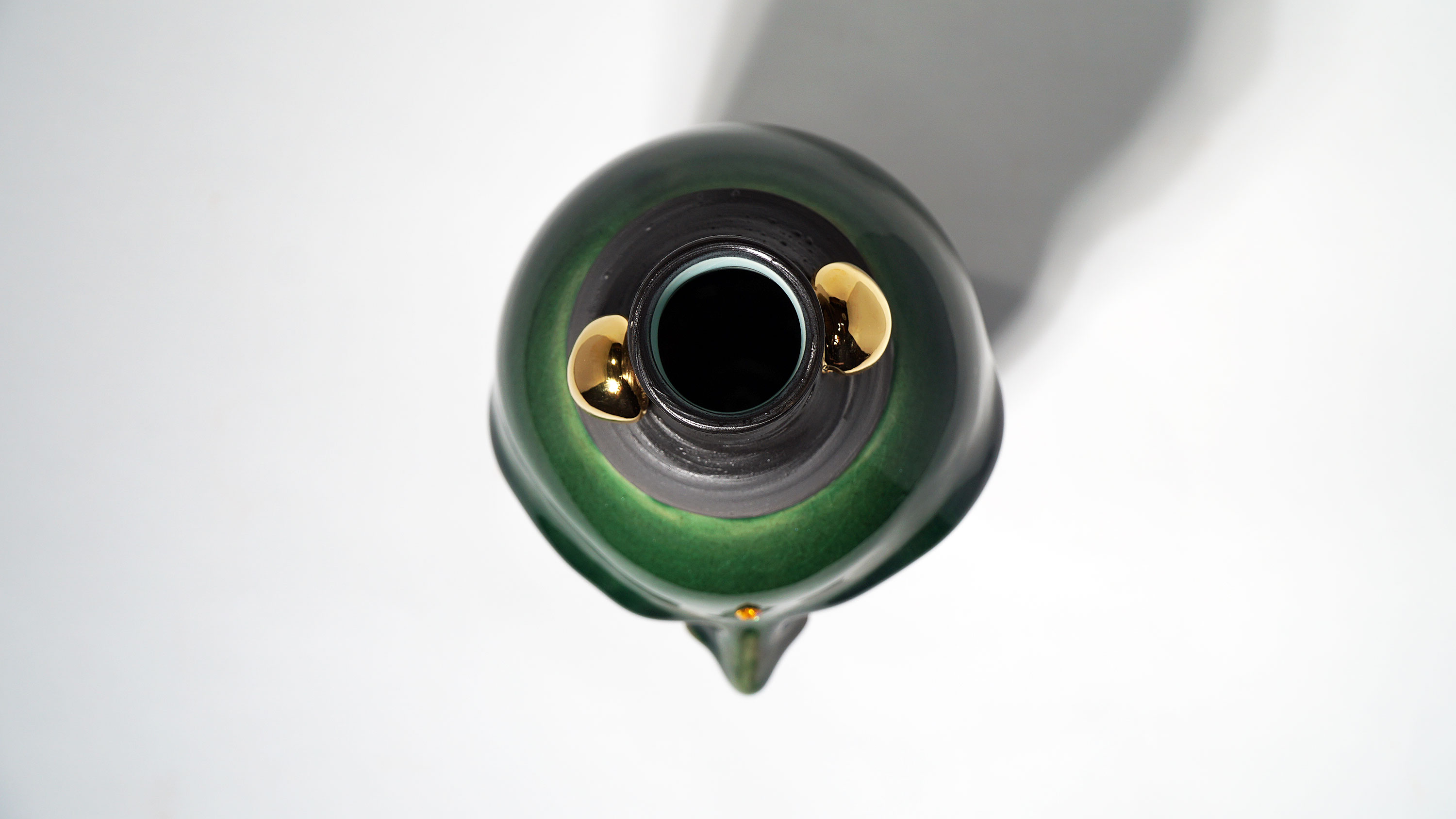 Dogabi Flower Vase is crafted with white porcelain clay and gold metallic glaze as an accent.