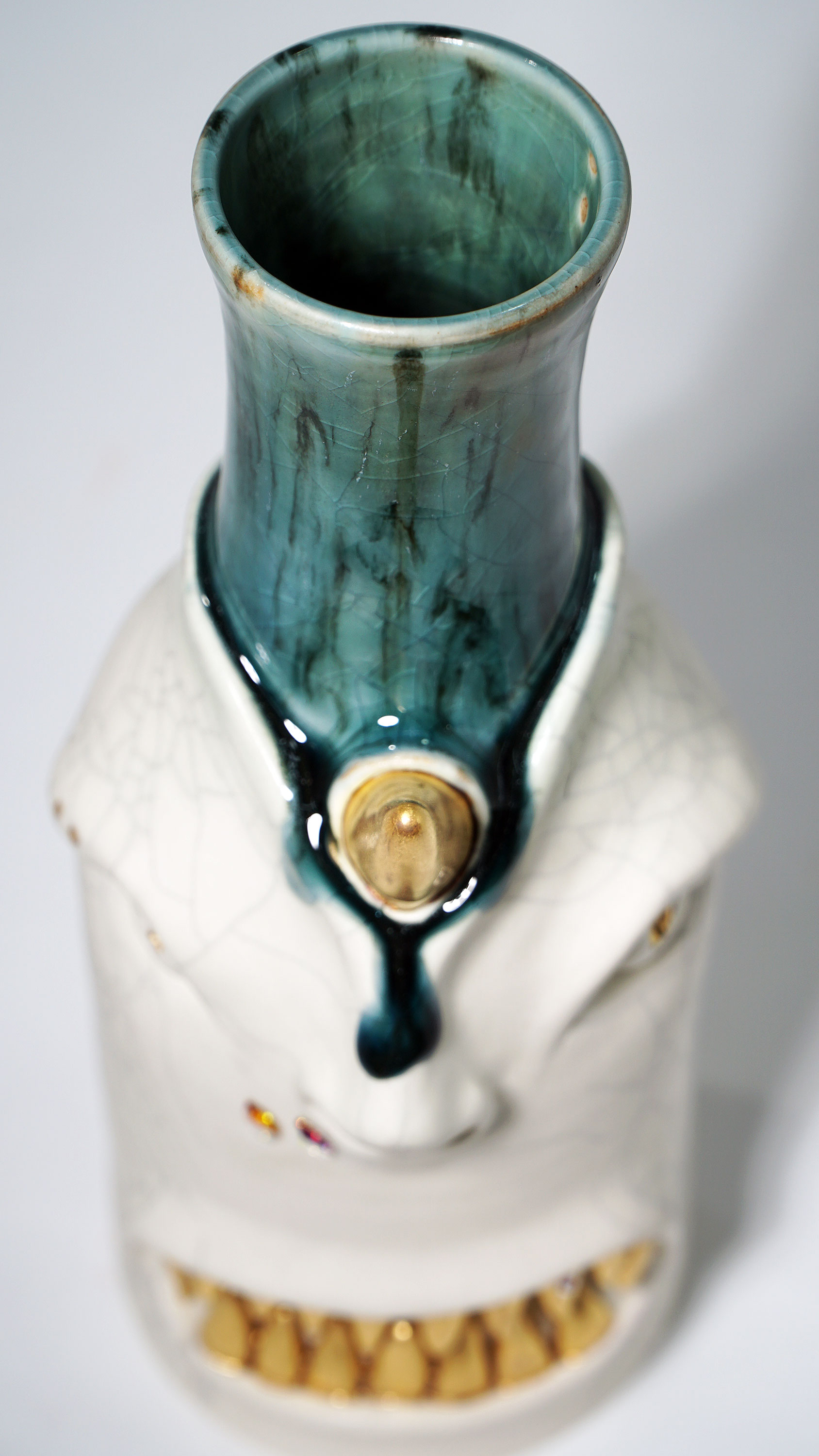 Dogabi Flower Vase is crafted with white porcelain clay and gold metallic glaze as an accent.