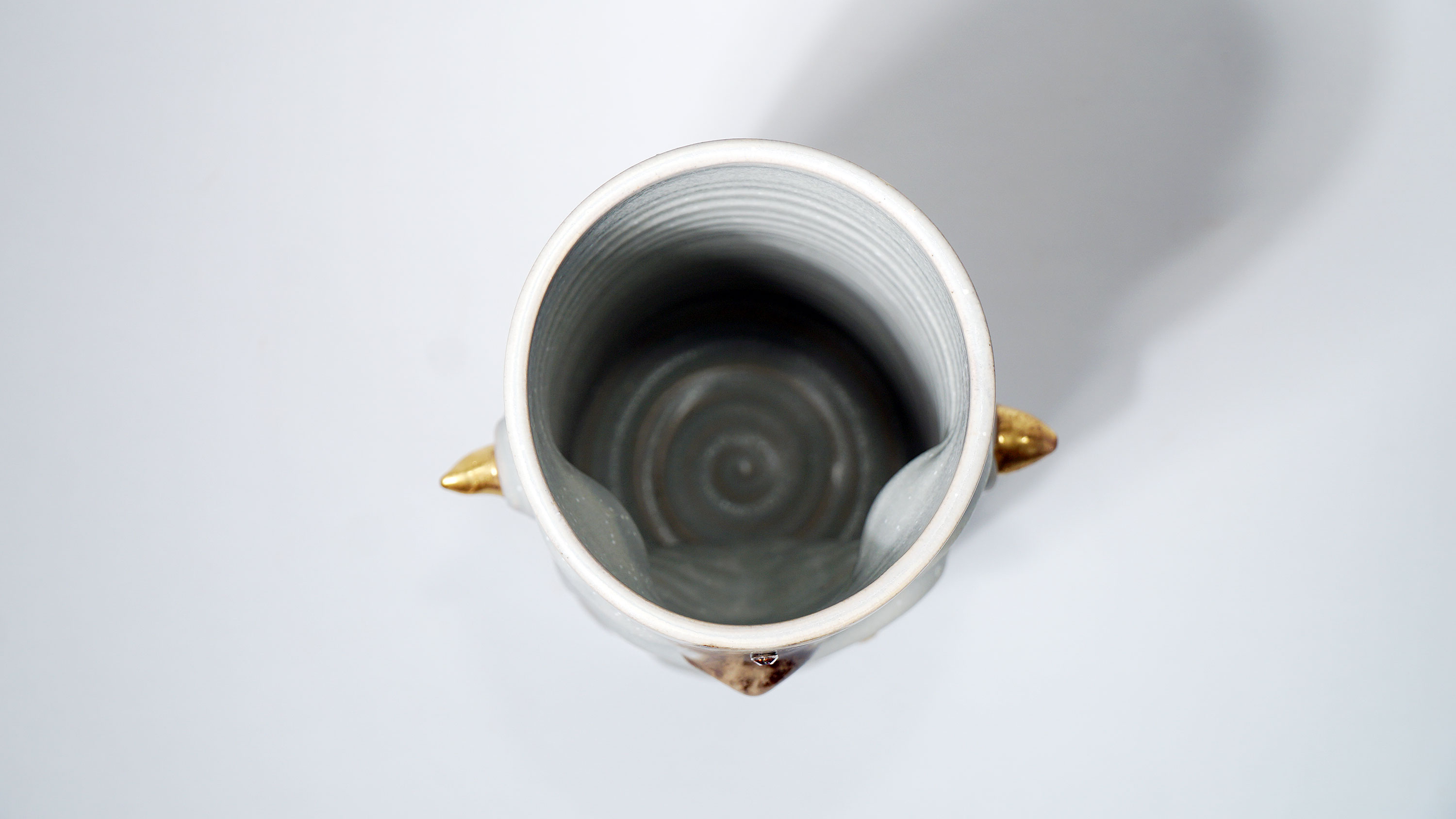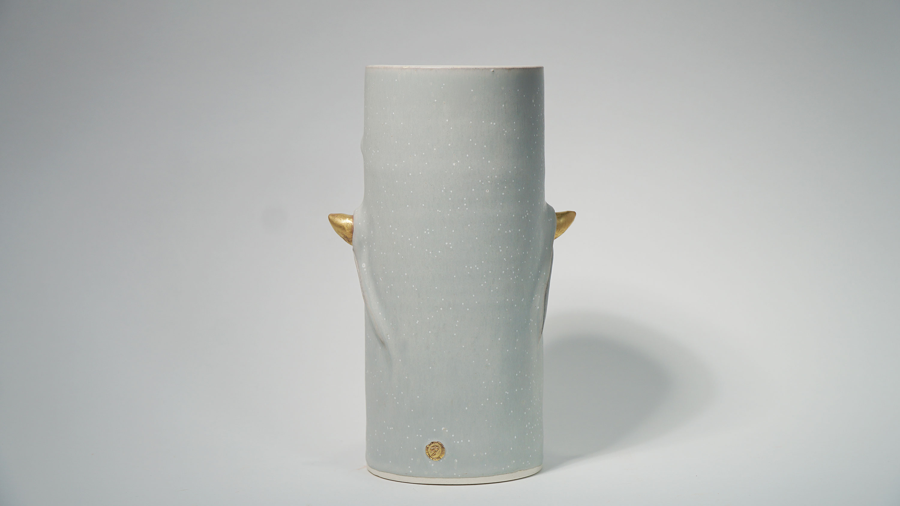 Dogabi Flower Vase is crafted with white porcelain clay and gold metallic glaze as an accent.