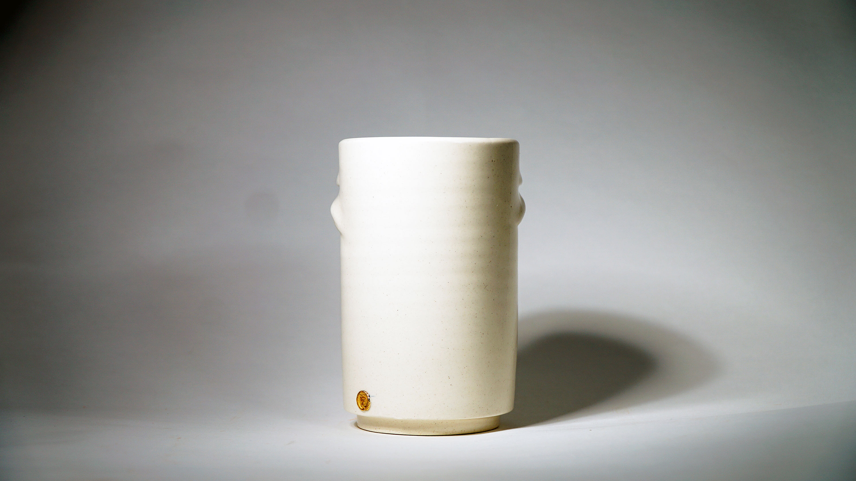 Dogabi Flower Vase is crafted with white porcelain clay and gold metallic glaze as an accent.