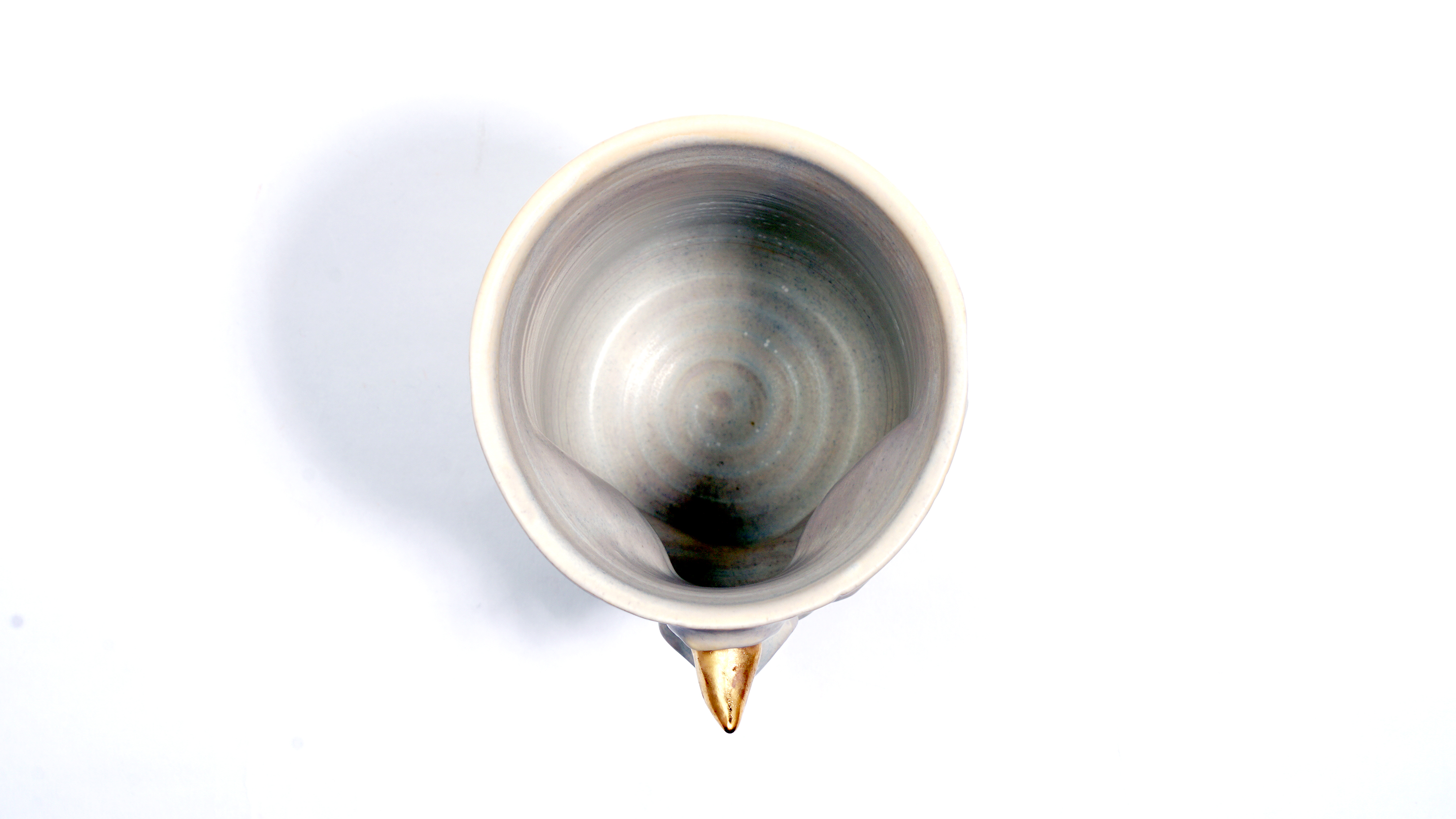 Dogabi Flower Vase is crafted with white porcelain clay and gold metallic glaze as an accent.