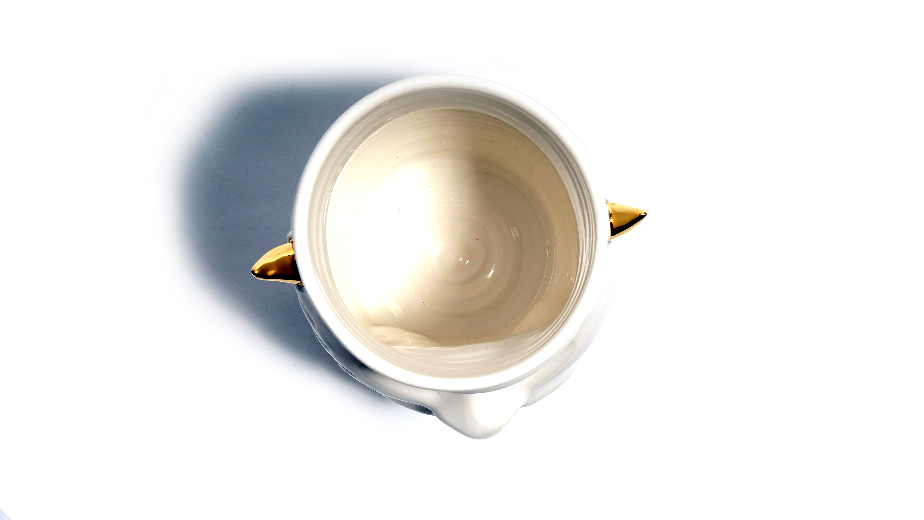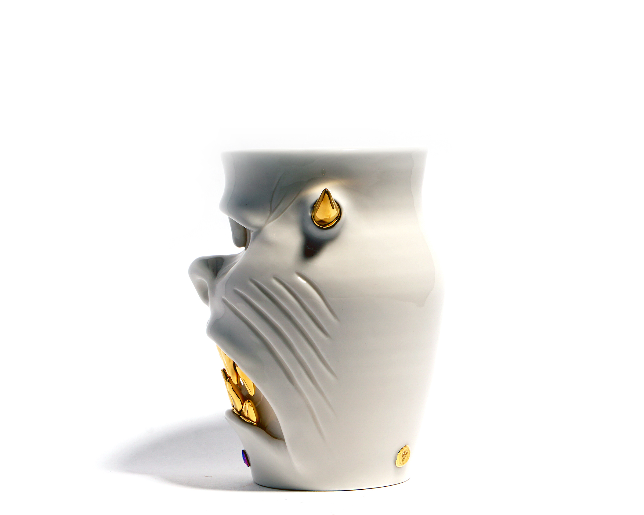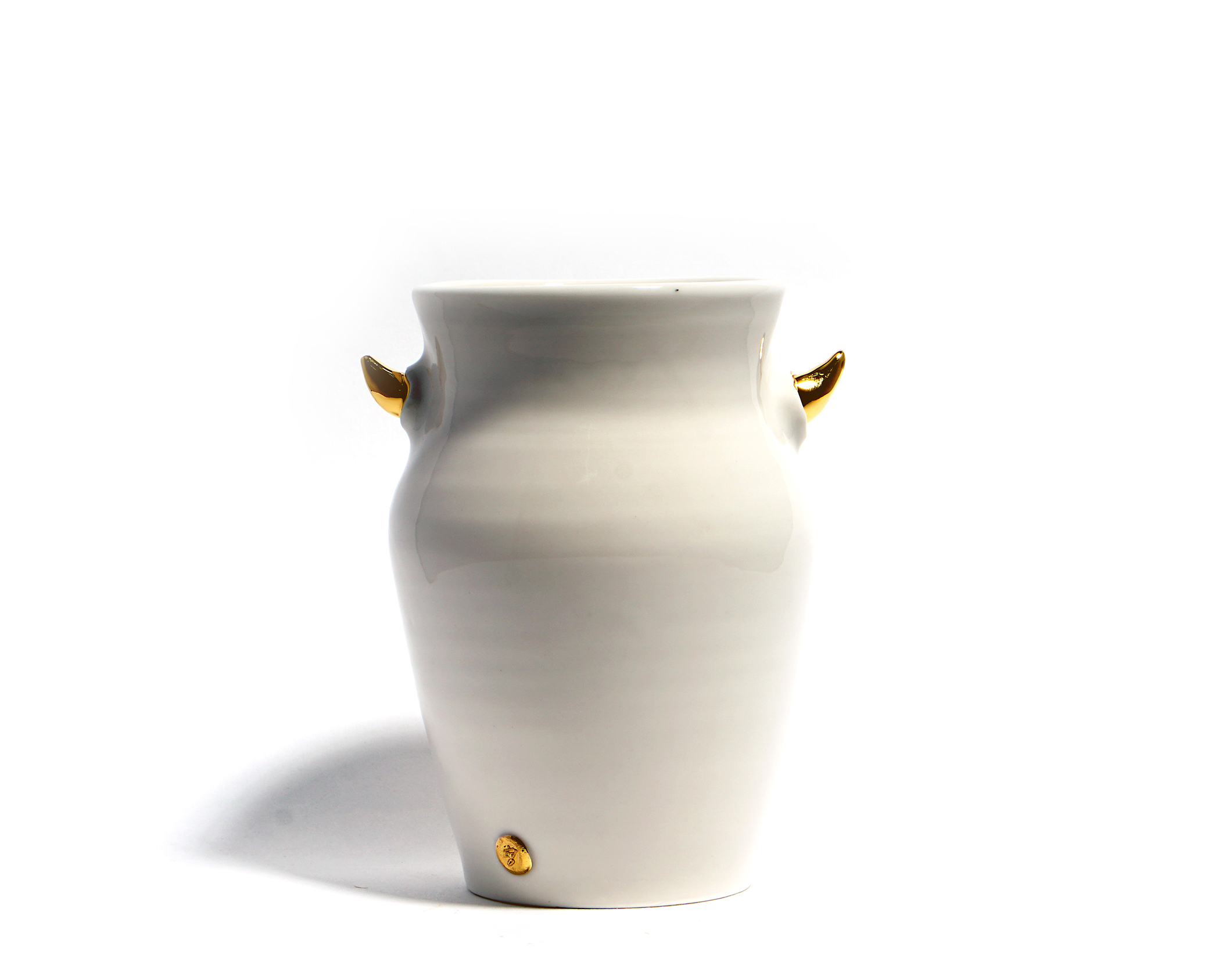 Dogabi Flower Vase is crafted with white porcelain clay and gold metallic glaze as an accent.