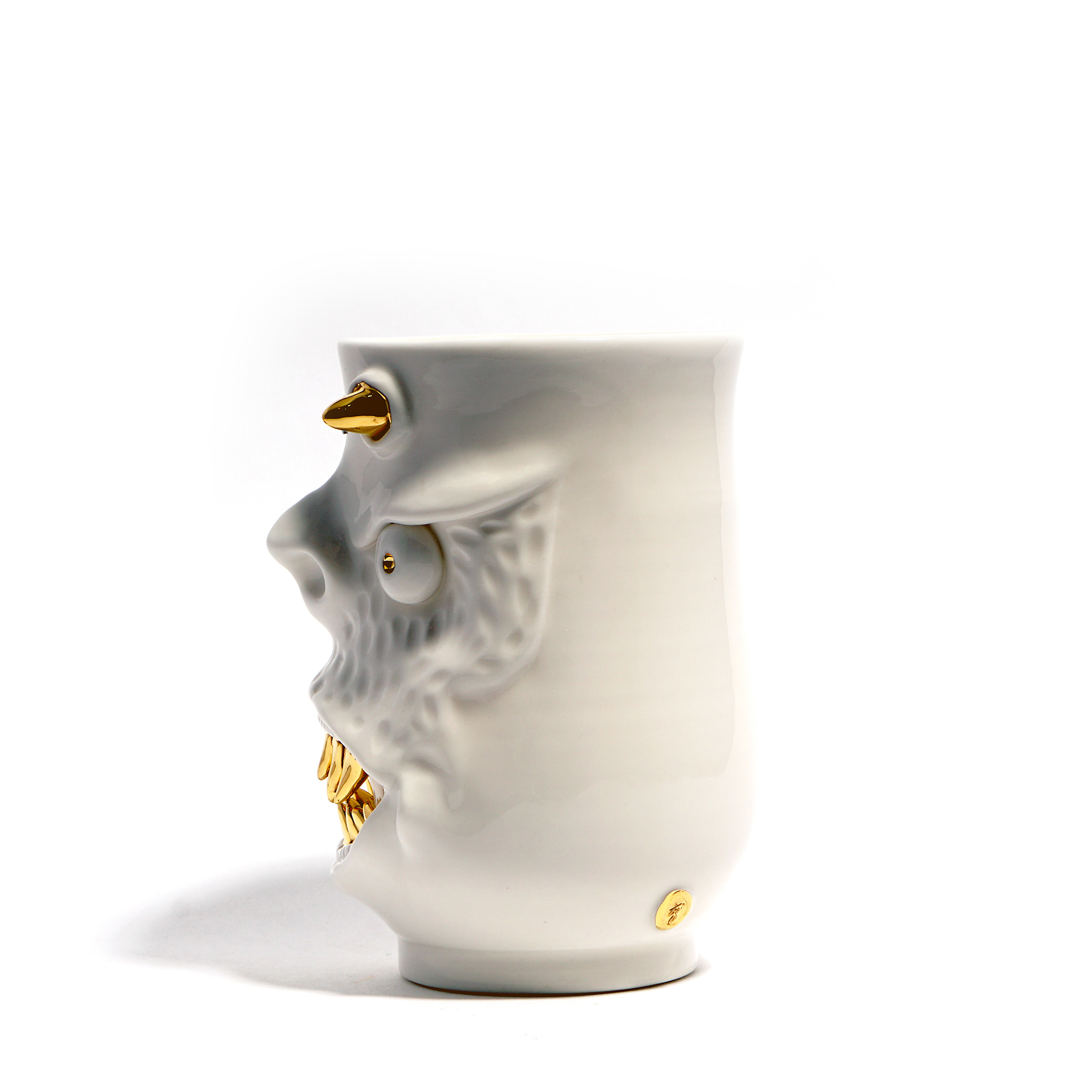 Dogabi Flower Vase is crafted with white porcelain clay and gold metallic glaze as an accent.