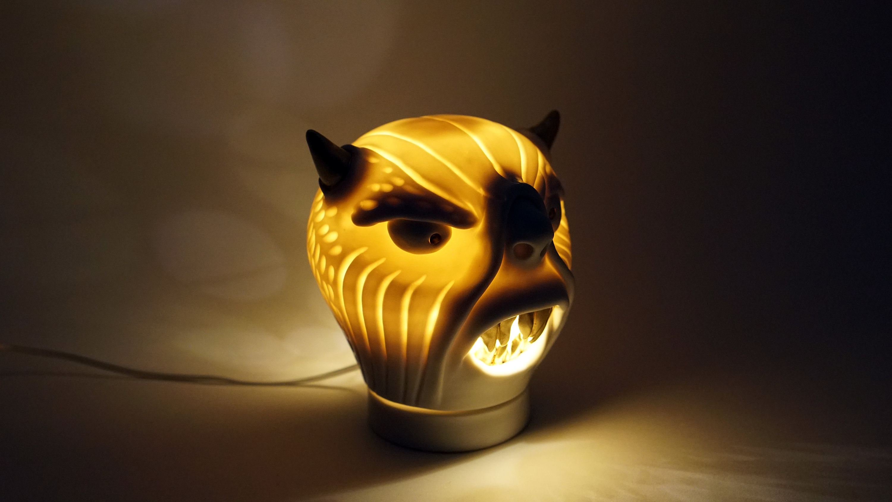 I would like to recreate the outdated lamp as an aesthetic useful art piece with the image of the oriental guardian.