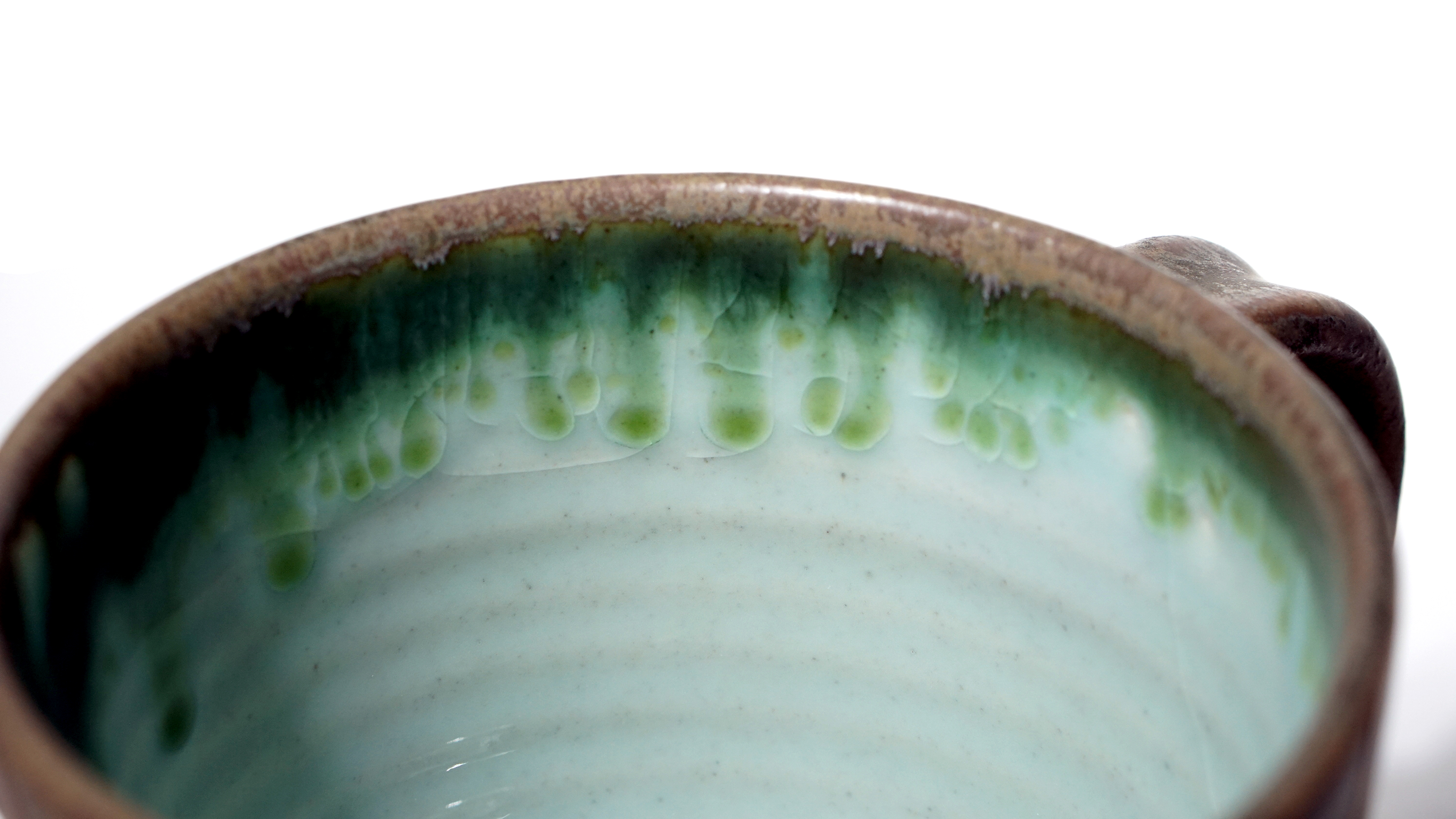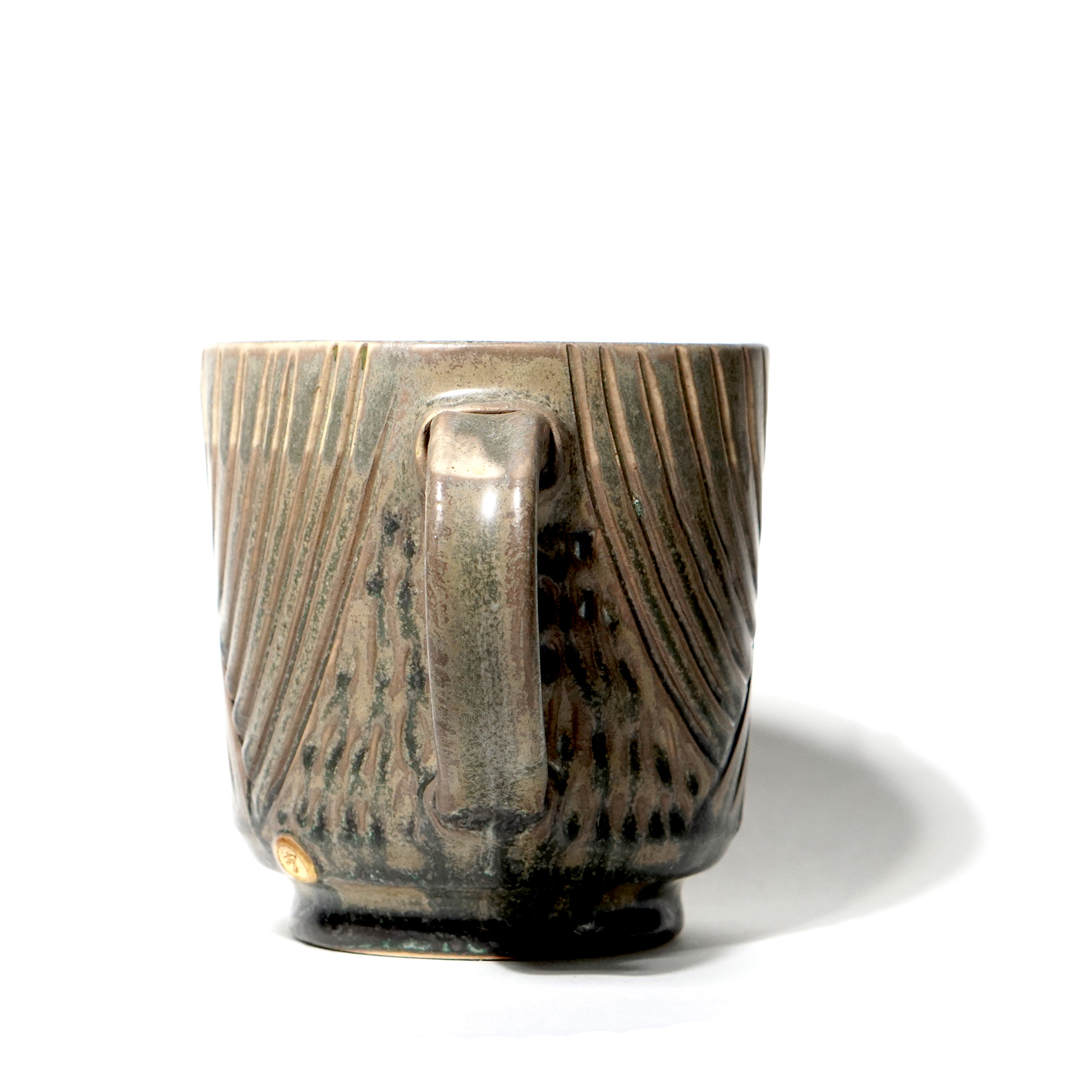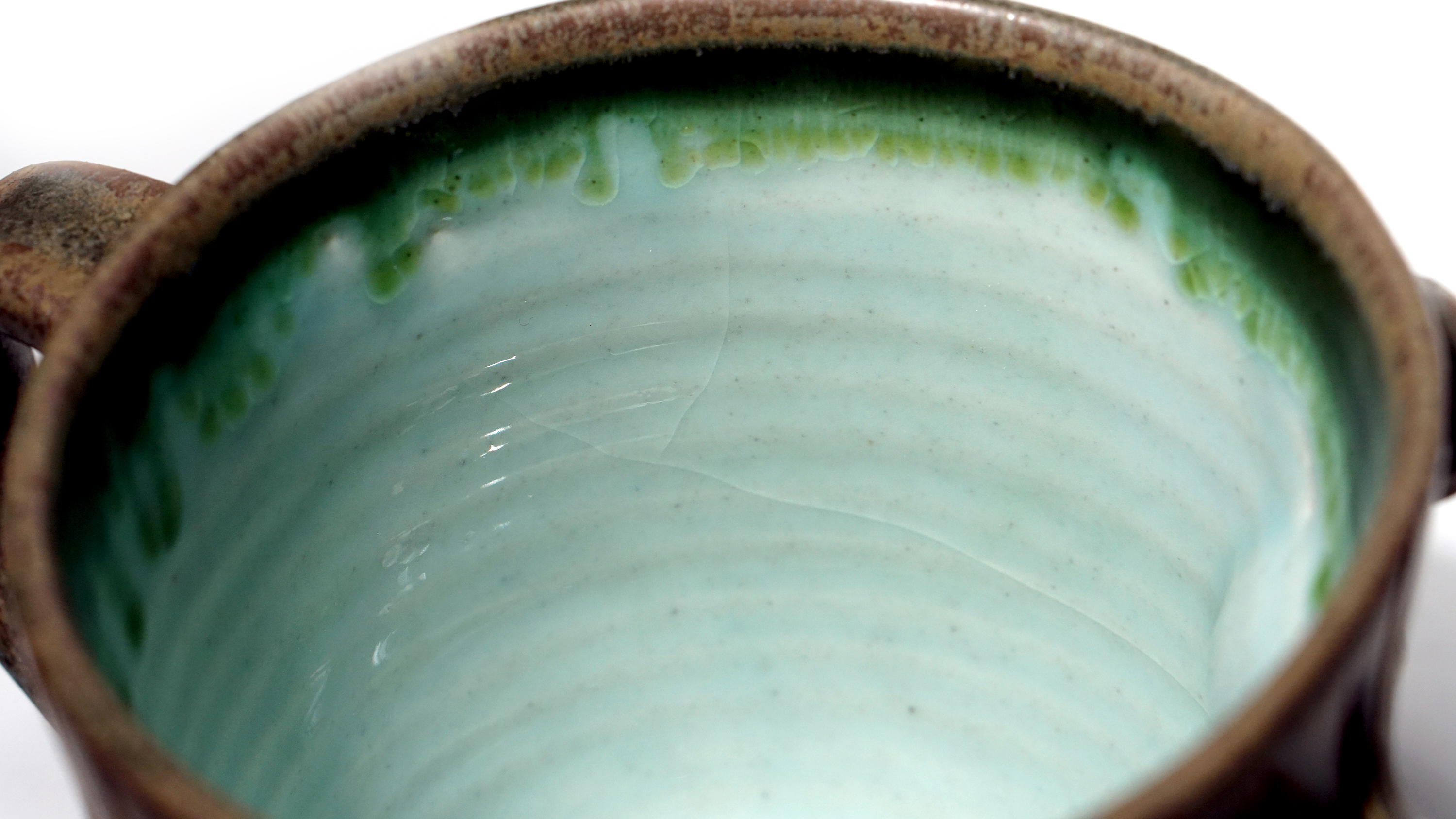 ** This mug has fine cracks in the glaze. This is not broken, but a natural phenomenon caused by the difference in shrinkage between glazes. **