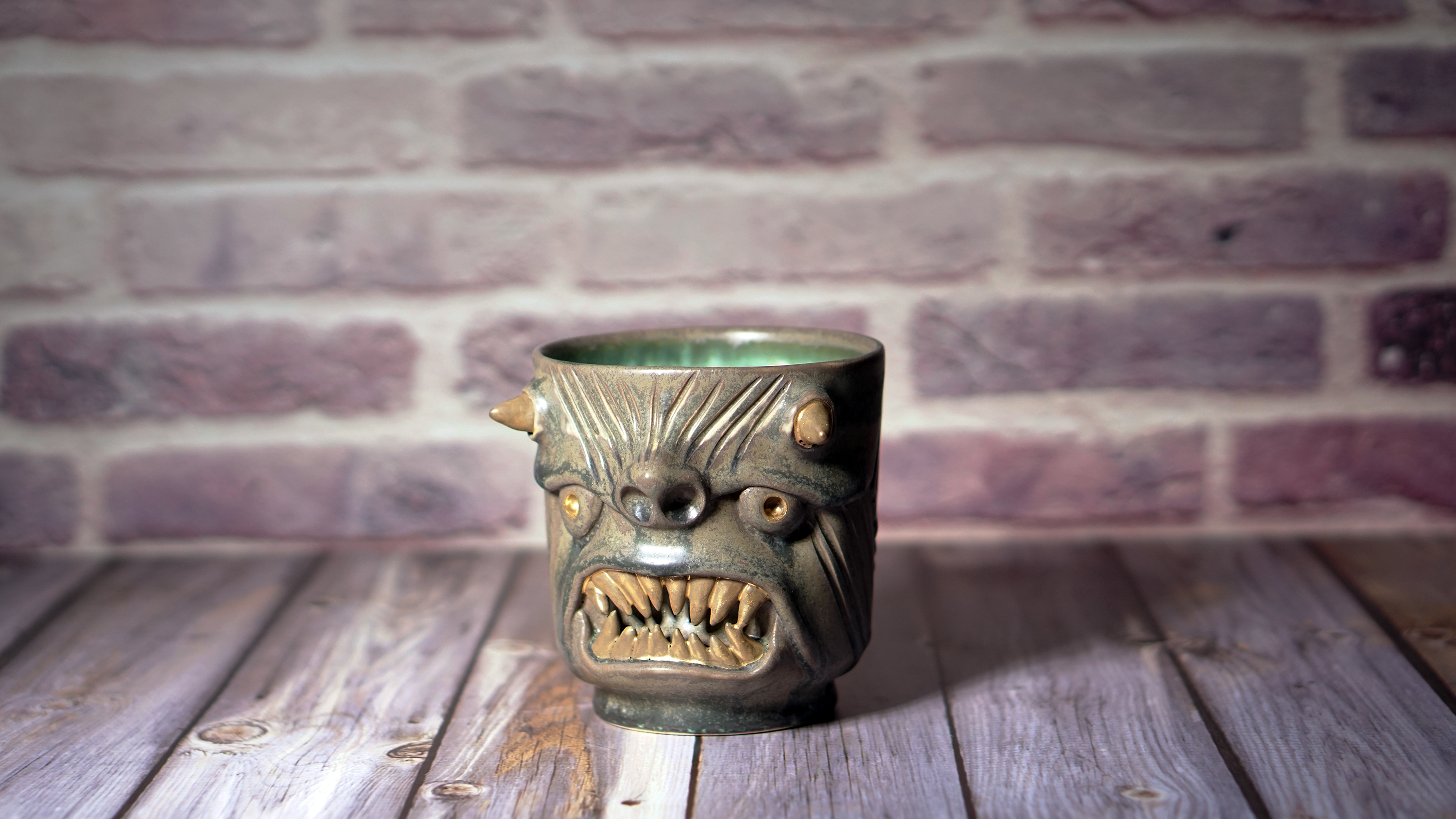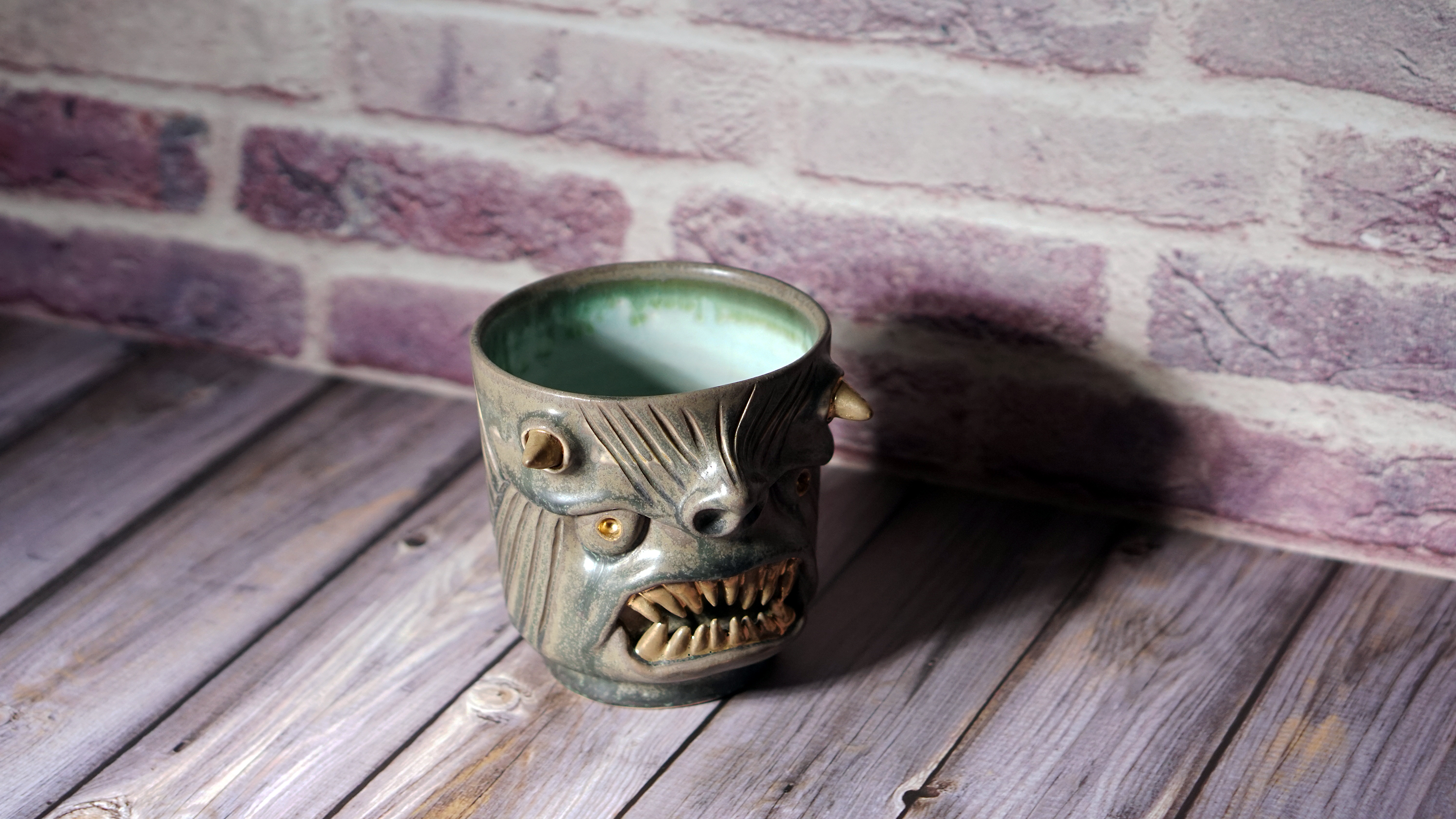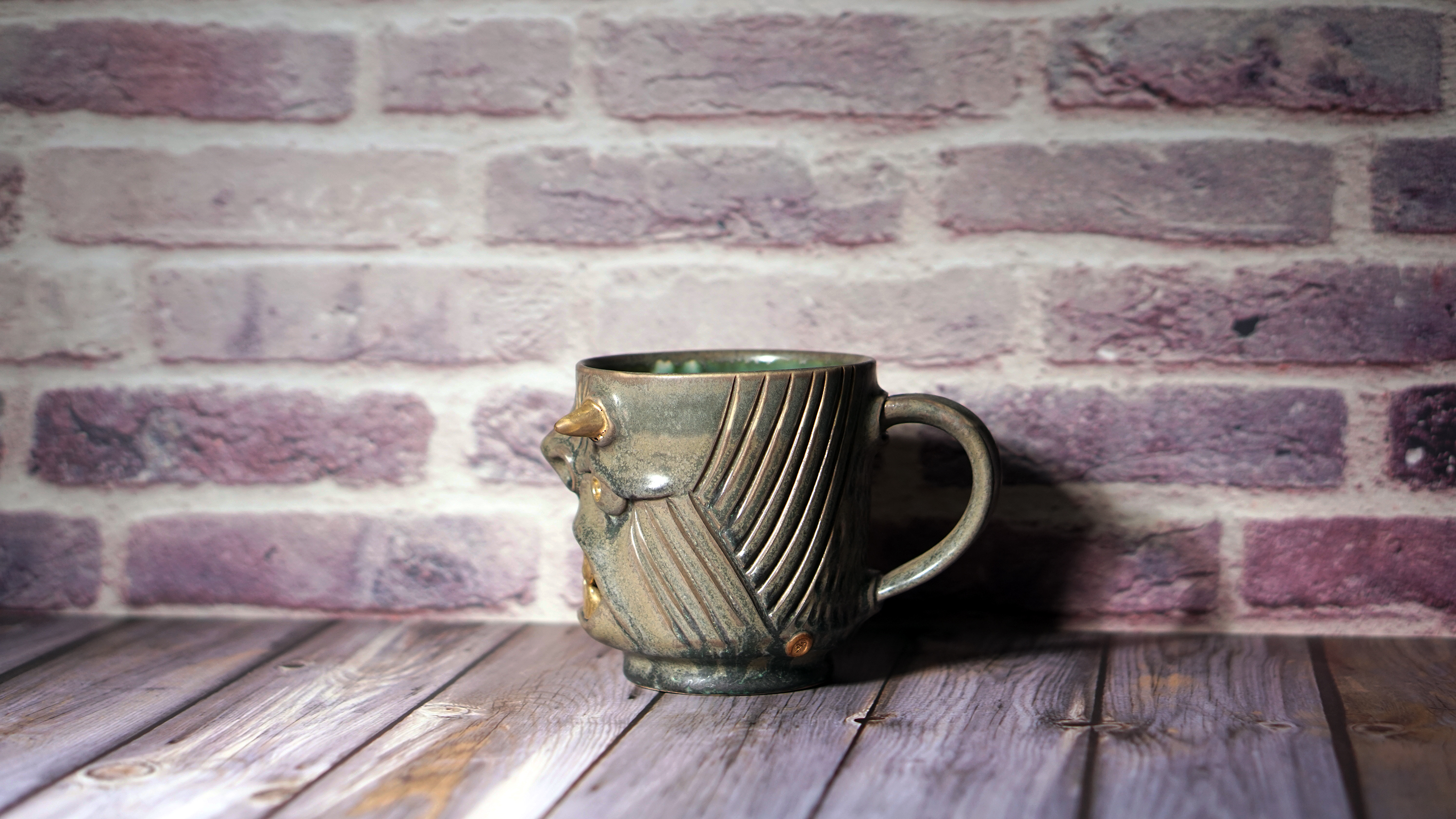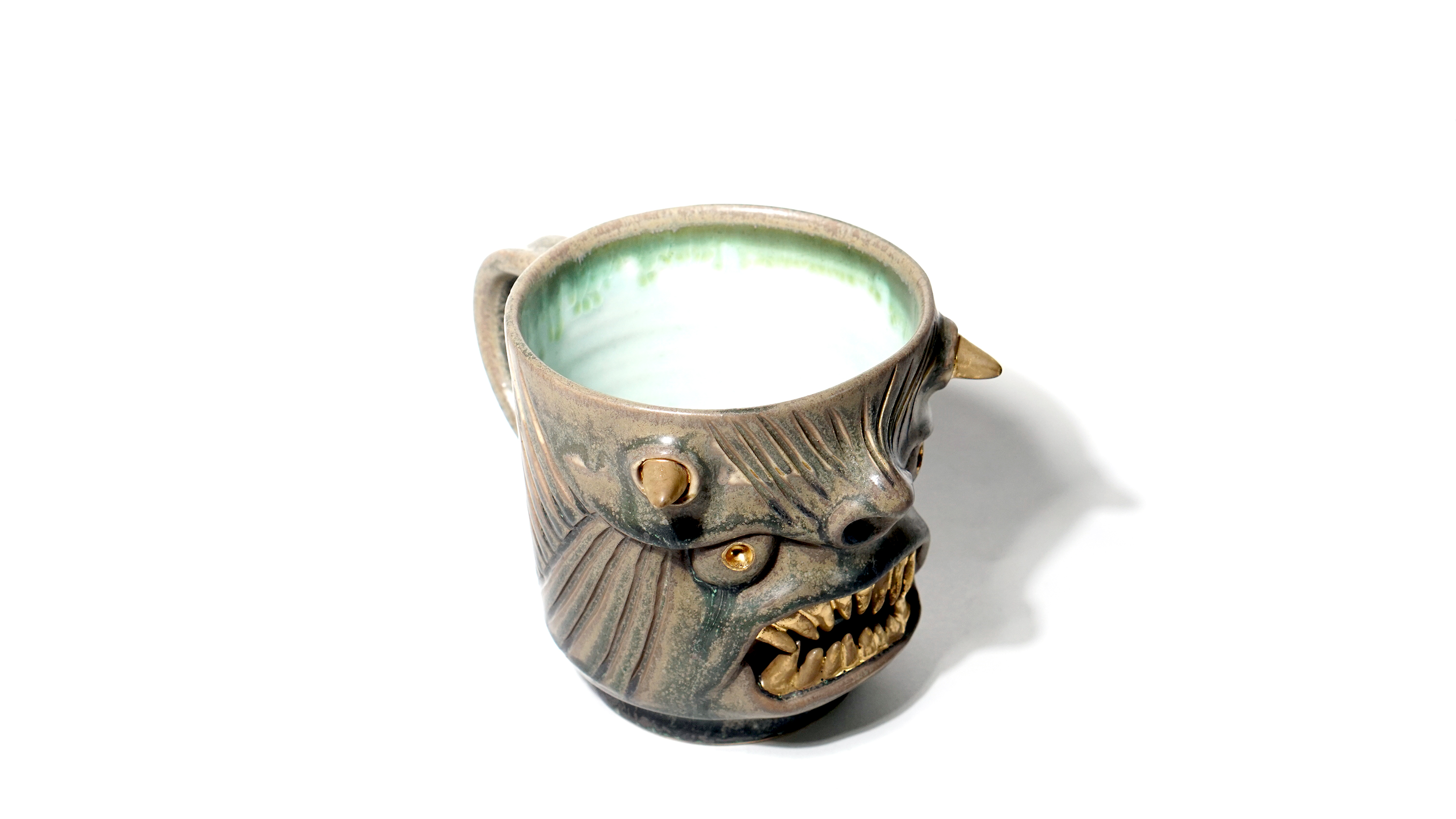 ** This mug has fine cracks in the glaze. This is not broken, but a natural phenomenon caused by the difference in shrinkage between glazes. **