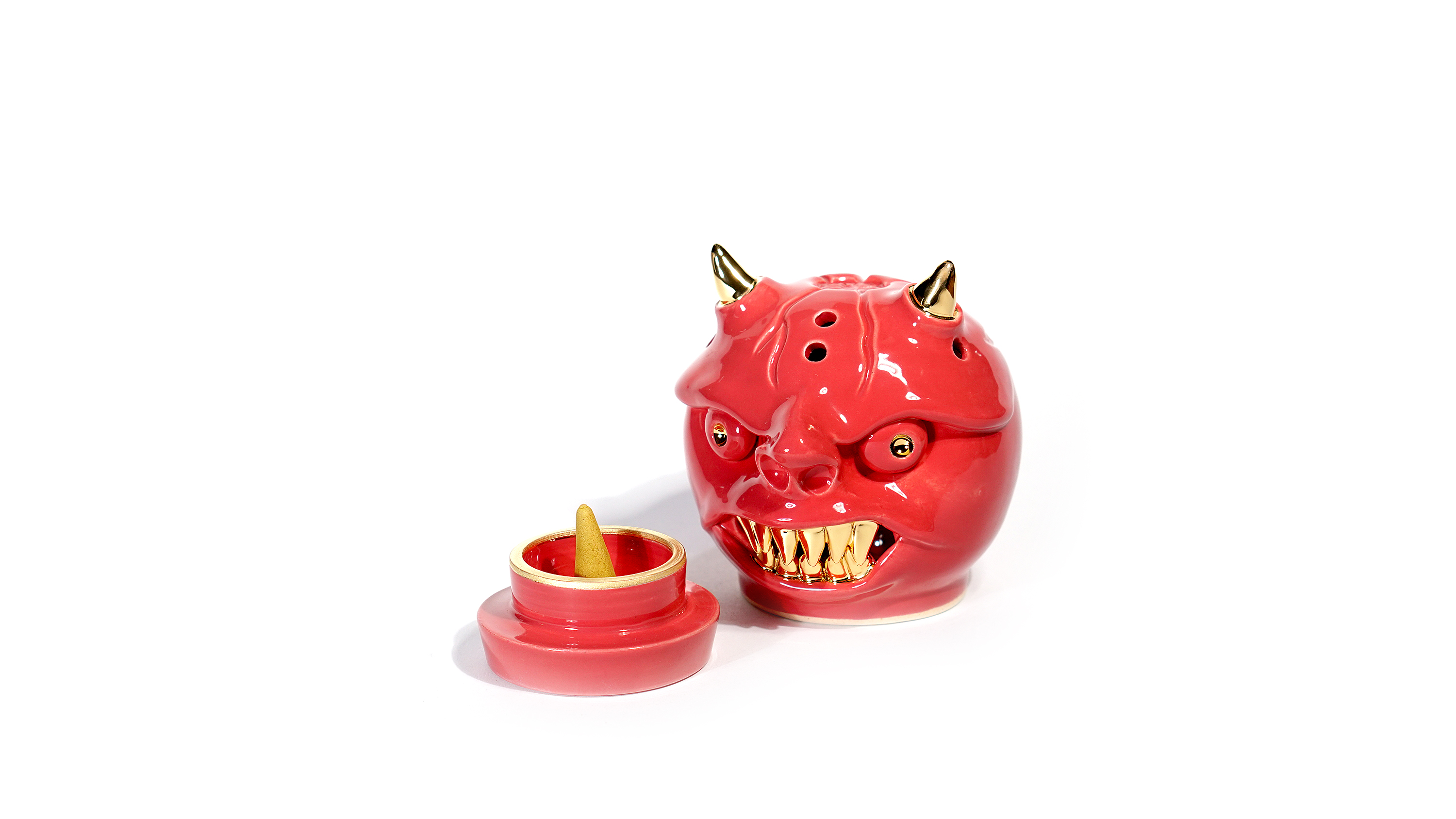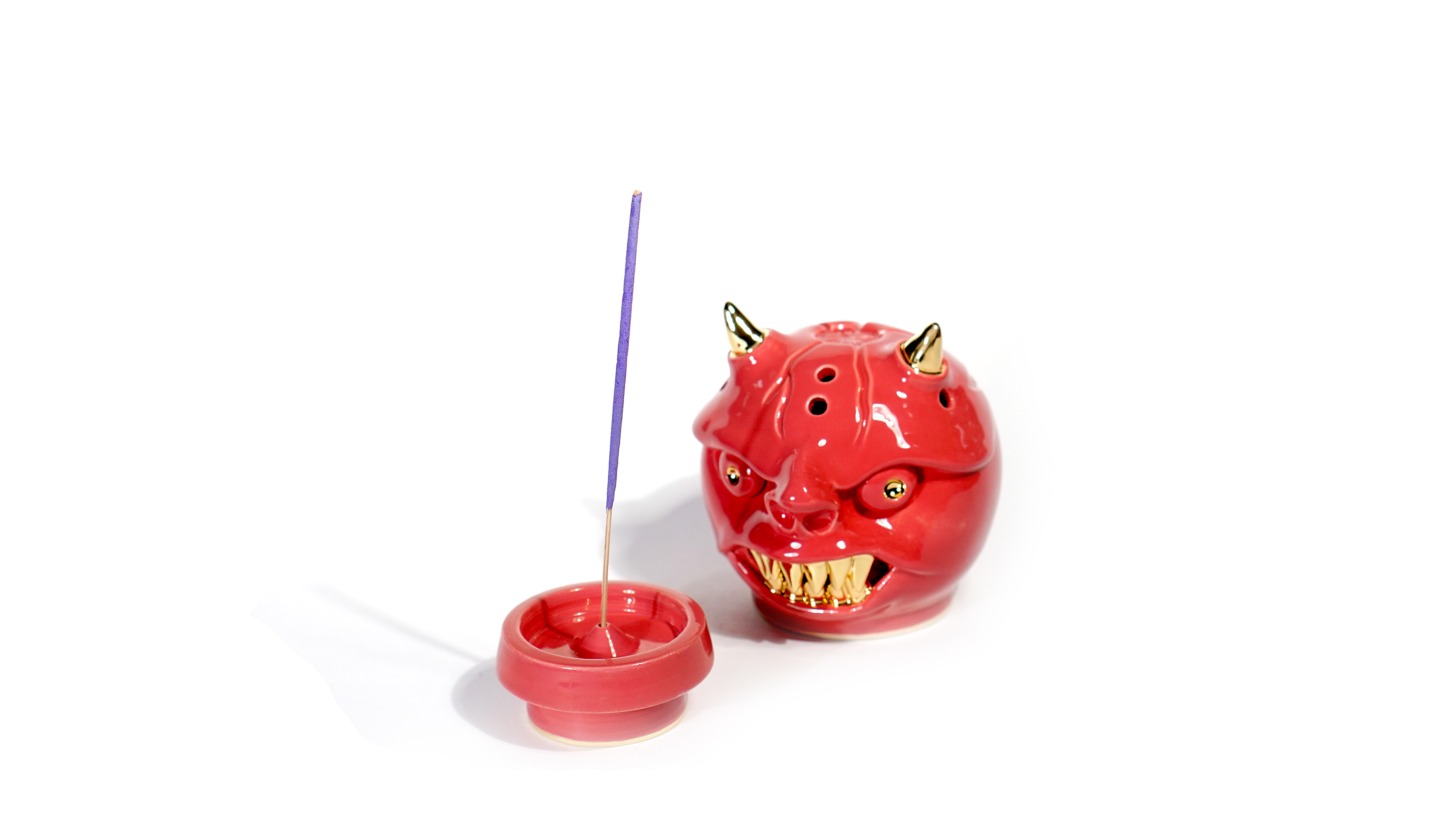 Made by sculpting and wheel throwing, the scent of incense burner spreads subtly through the hollow parts of the lid. The bottom holder is designed on both sides, which allows the user to use both cone and stick incense.