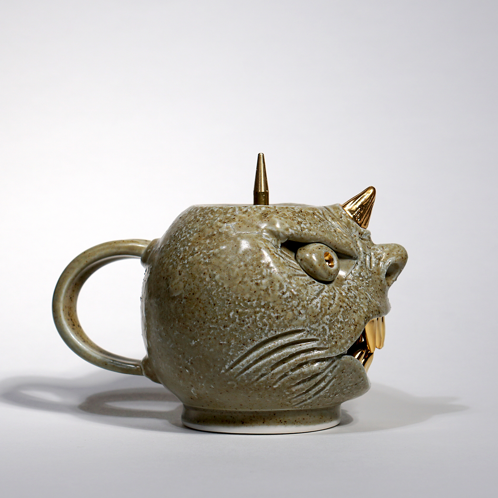 DOGABI candle holder with pin in bronzed brass is a porcelain sculpture for everyday use that will make your space even more special.