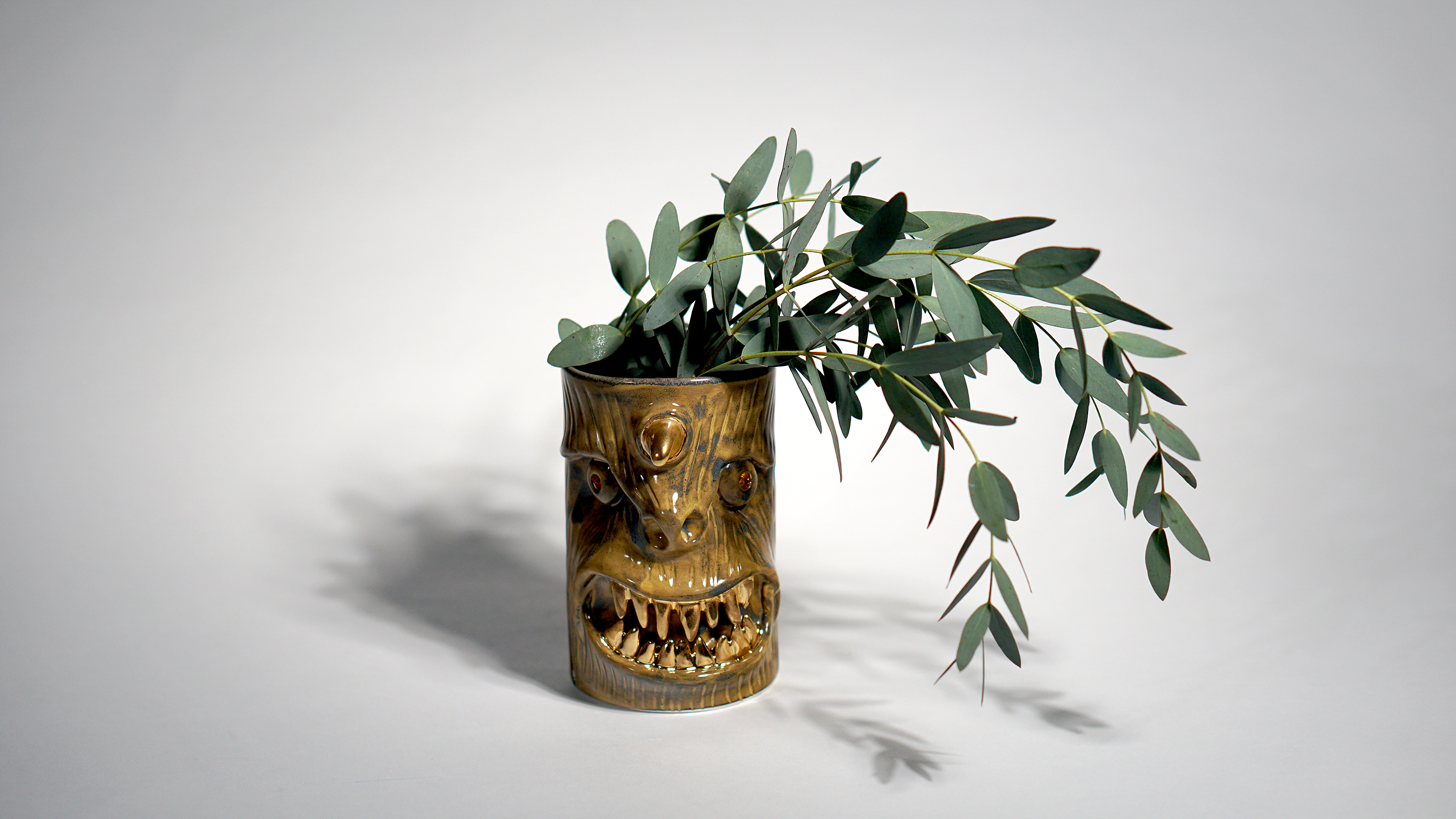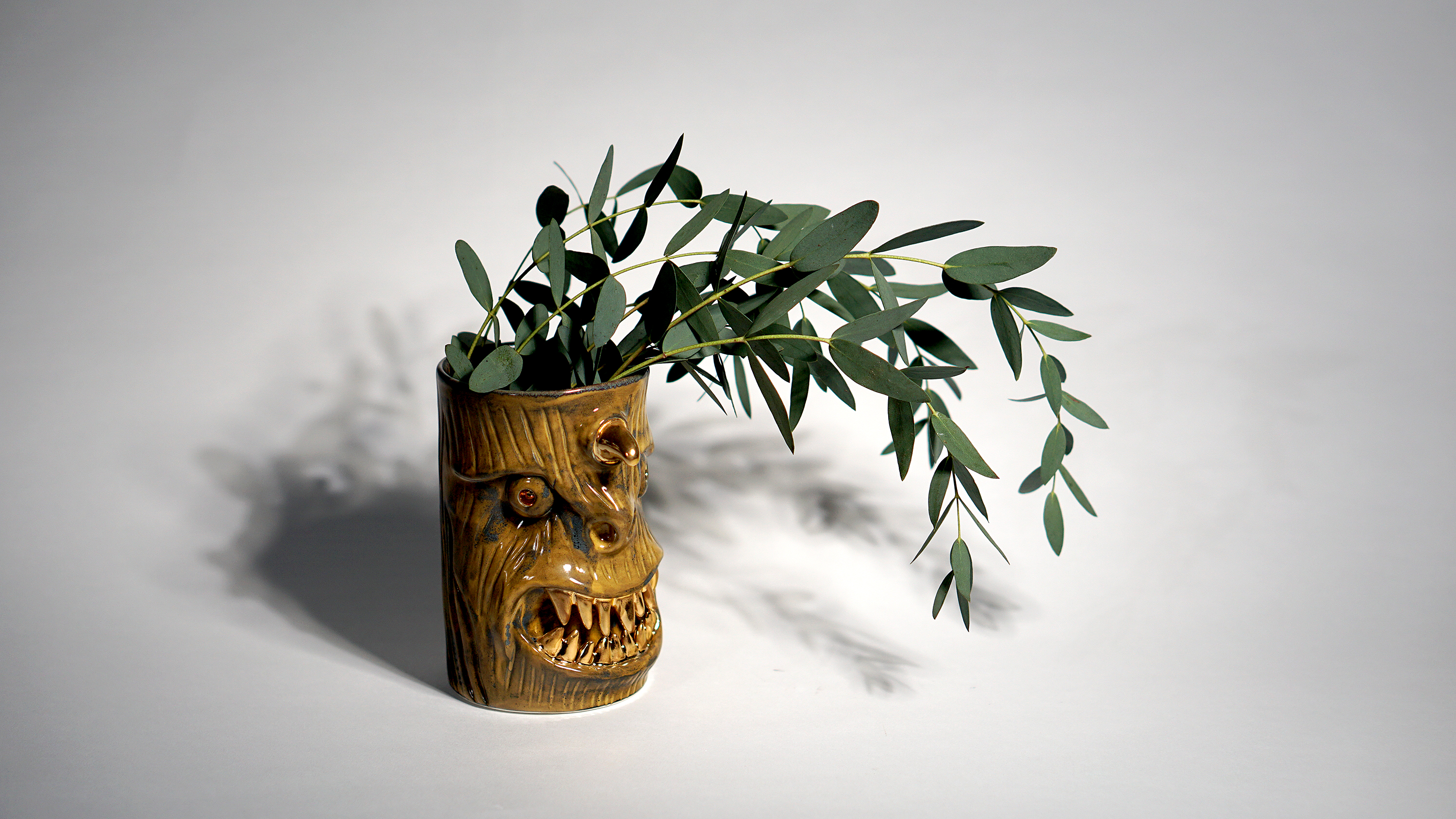 They make gold for good people, protect their homes, and help them succeed. Their figures exist in people's imaginations, and sometimes they are seen as men with magical powers, or they are portrayed as terrifying monsters. You can meet Korean goblin faces imagined by ceramic artist Hyung Jun Kim in our brand.